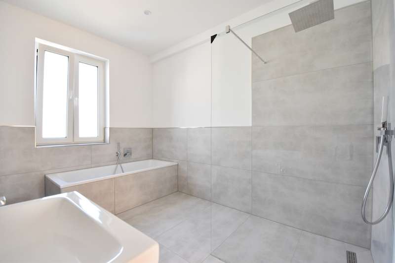 This modern 3-room apartment is located in a quiet area of Limburgerhof and could soon be your new home. The building is currently being completely refurbished and the resulting living space will be available for first-time occupancy from spring 2025. An elevator will take you comfortably to the top floor, where a long hallway will lead you into the open-plan kitchen and living area. Large windows bring in plenty of light, even in the darker months of the year. From here you have access to the balcony, where you can relax on sunny days. Two further rooms can be arranged according to your needs as bedrooms, children's rooms or studies. The daylight bathroom is equipped with a bathtub and a floor-level shower. A guest WC completes the floor plan. The building is sustainably supplied with electricity via a photovoltaic system, while a heat pump ensures pleasant temperatures via the underfloor heating and low energy costs overall. A storage room is available in the basement. An outdoor parking space where you can park your car completes the offer.