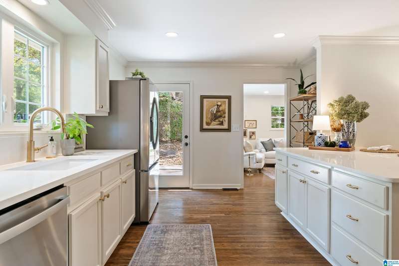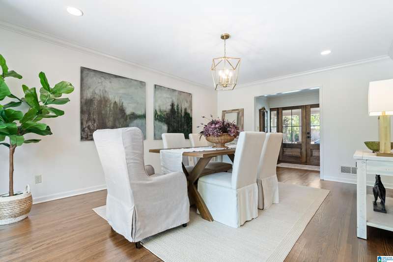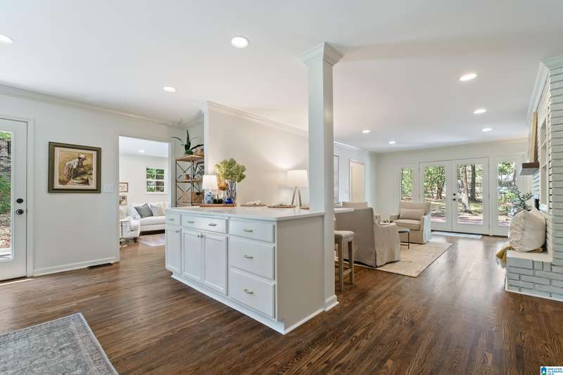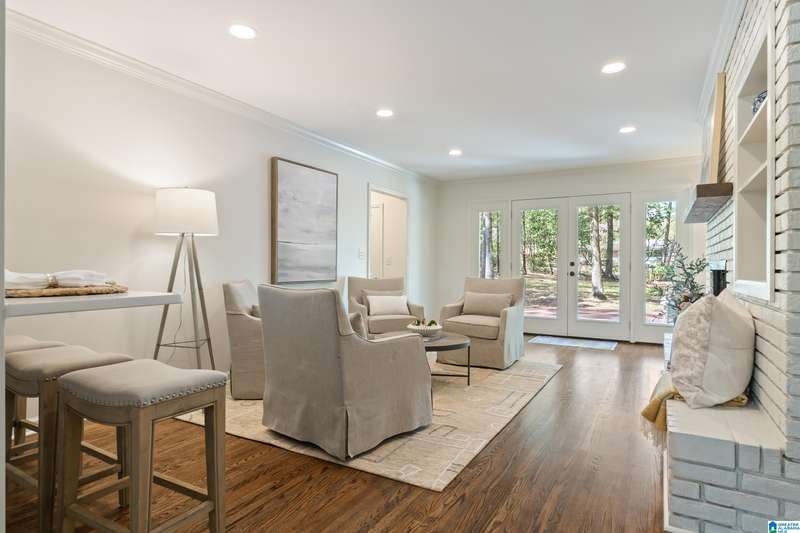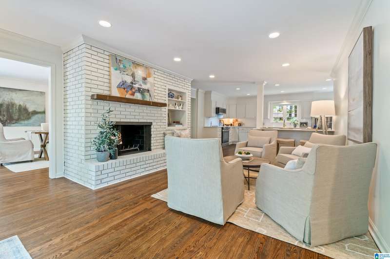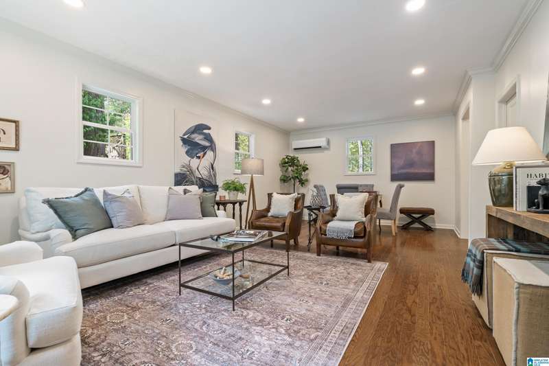 Stunning Bluff Park Renovation, you will fall in love the second you step onto the covered front porch tucked among the shade trees. The stunning front door invites you right into a great size foyer, that looks onto a stunning dining rm, also off the foyer you will find the Gourmet Kitchen & Living rm w/ large brick wood burning fireplace w/ bookshelves & tall hearth. Off the Kitchen you will find a supersized den & laundry rm. The Main Suite w/ double closet & private entrance can be found on the other end of the home, as well as the other 2 bedrooms & bath. The brand new deck is great for entertaining & enjoying your Huge flat back yard, w/ 2 storage buildings. The yard is mainly fenced but would need to be connected on the sides of the home. New Tankless water heater, New Appliances, New Mini split HVAC system & so much more. All walking distance to the Shades Cliff Pool, Park & Pavilion as well as Bluff Park Elementary.