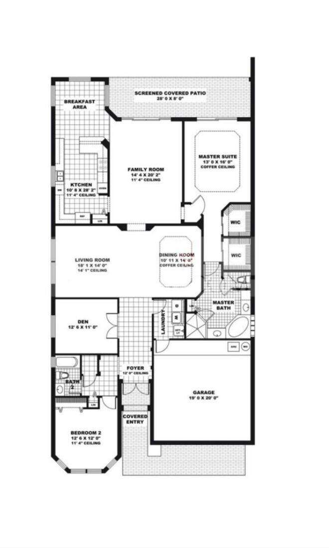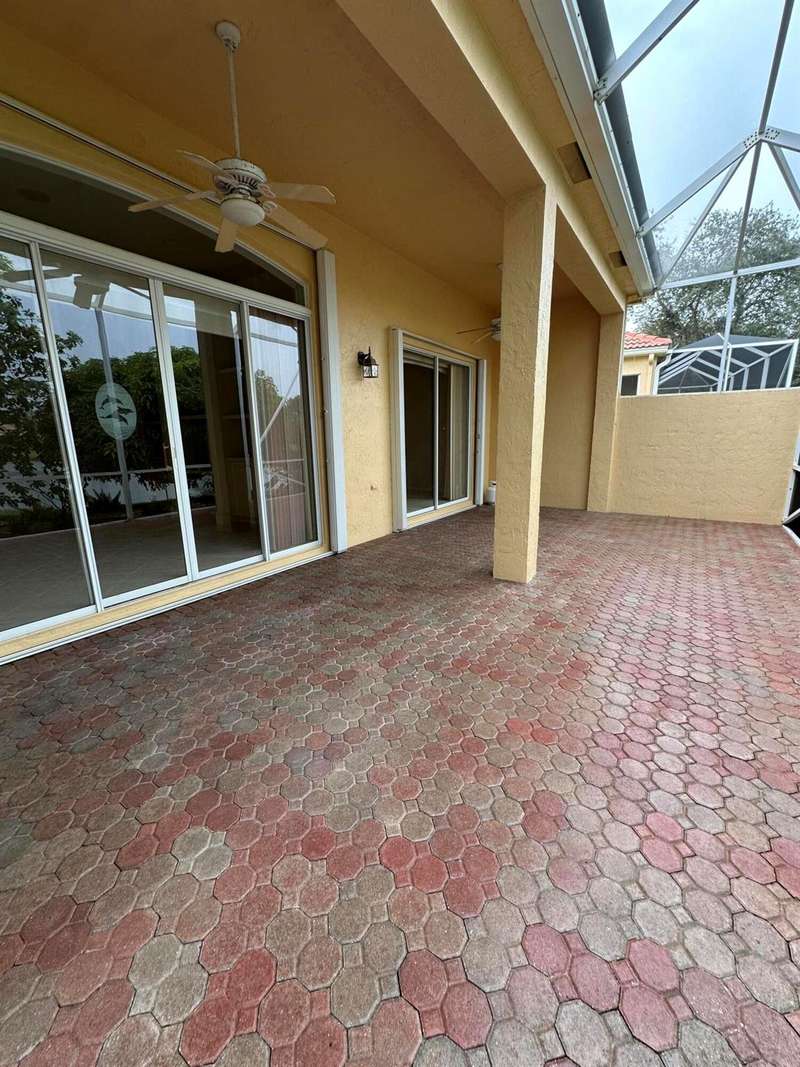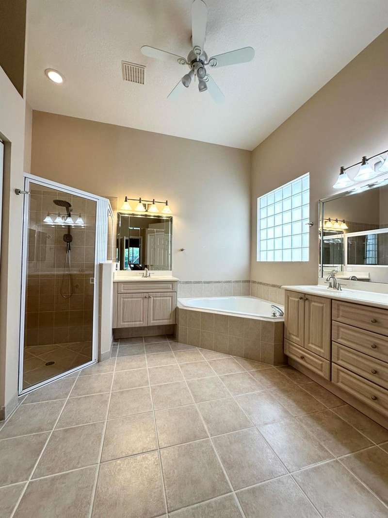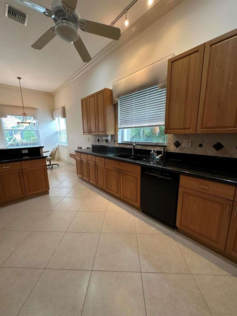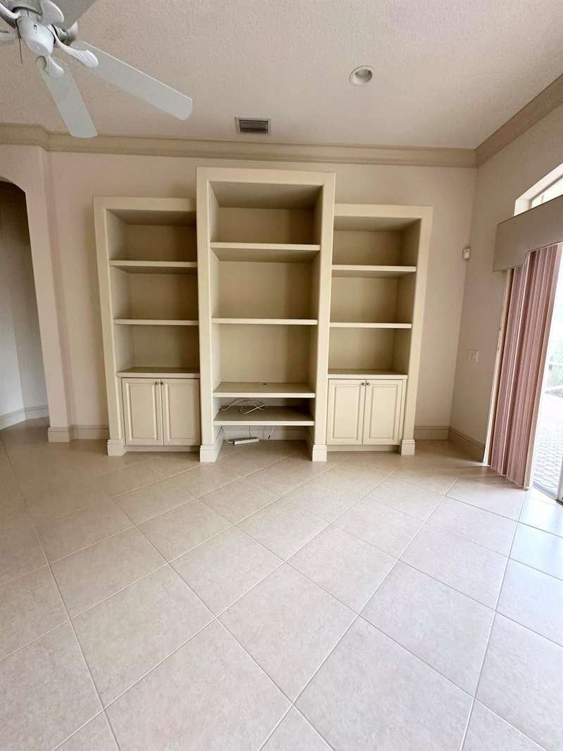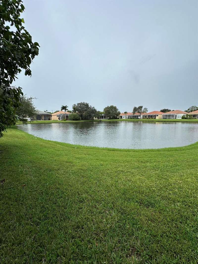 Rare offering of the highly sought-after St Michele model in vibrant, gated Vizcaya! This waterfront residence is the largest floor plan in the community offering 2 bedrooms + den/office, oversized tile flooring, taller upper kitchen cabinets, granite countertops, a thoughtfully designed open layout, built-ins and a 2 car garage. The den is perfect for a home office or guest room. The generous, covered patio creates a relaxing setting with a water view. Nestled deep within the community for added privacy, this house provides a peaceful, quiet setting in an active adult community.Vizcaya offers resort-style amenities including fully staffed clubhouse, heated pool, lighted tennis courts, pickleball, large fitness center, social rooms and craft