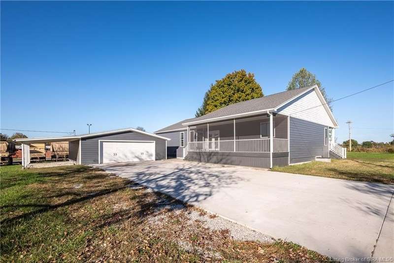 Like New Home with so many gorgeous details! Kitchen has granite countertops, stainless appliances and beautiful cabinets. Living room shares an open floor plan and hickory hardwood floors. 4 nice sized bedrooms with huge closets, and the best part is TWO full length porches with low maintenance decking, one is even screened in. Also, there is a great sized detached garage with a carport. All this in a quiet area that is close to all the fun things happening in downtown Scottsburg. Check it out today!