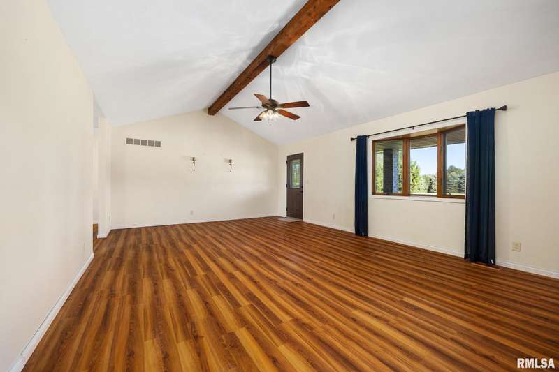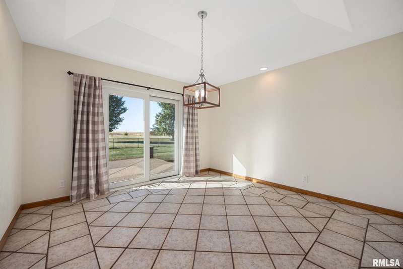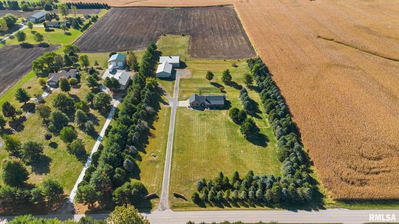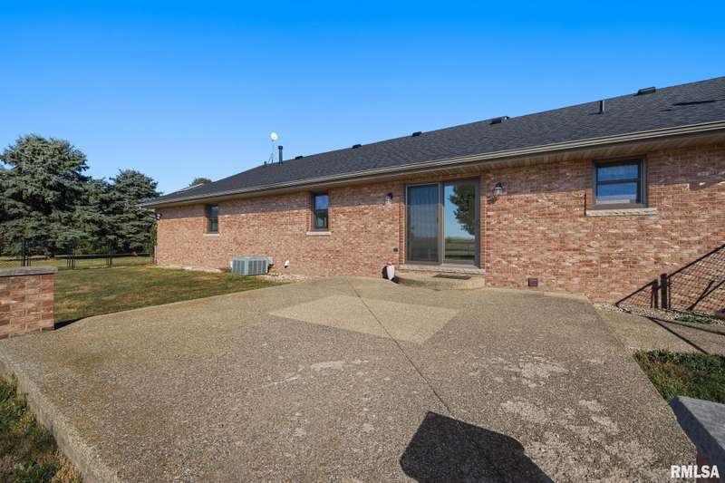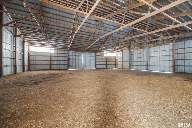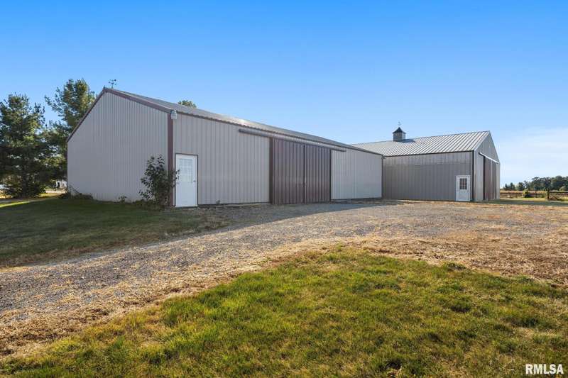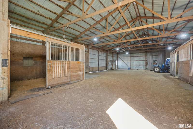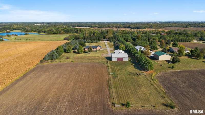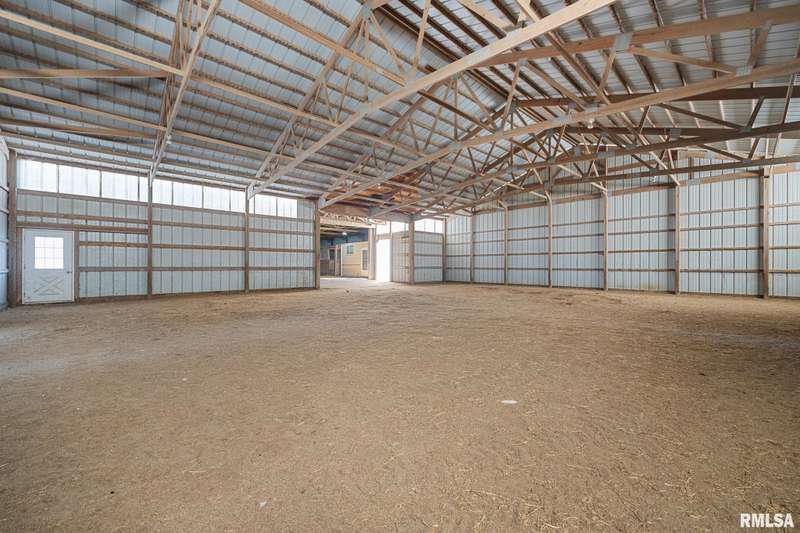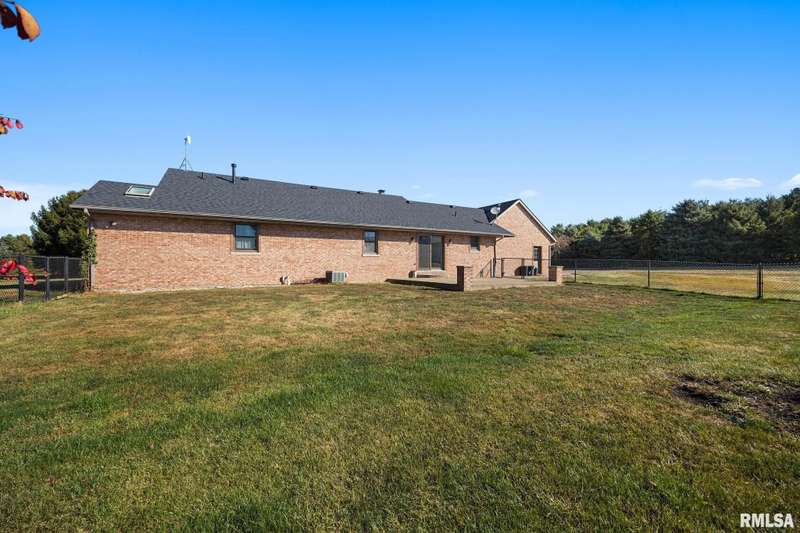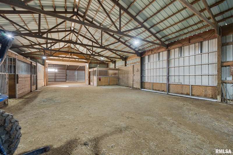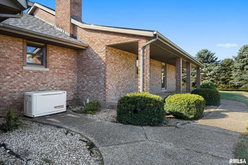 Picturesque 10-acre estate in Washington Schools (District 52) featuring a solid brick 3BR, 2.5BA ranch with 3-stall garage. The inviting living room showcases a brick fireplace, vaulted ceiling with exposed beam, and abundant natural light. Enjoy the updated kitchen with island, tiled backsplash, pantry, and all appliances included. Elegant dining room with tray ceiling offers walk-out access to the patio—perfect for entertaining. The beautiful primary suite includes a spacious walk-in closet and a luxurious bath with soaking tub and walk-in shower. Additional highlights include updated flooring, vinyl replacement windows, new Anderson sliding doors, new roof ('23), and a 10kW whole-house generator ('24). The full unfinished basement features an egress window and bathroom rough-in, offering endless possibilities. Outside, horse lovers will appreciate the large outbuilding equipped with 3 modular stalls—ideal for equestrian or hobby farm use. A rare country retreat with space, style, and serenity! Call for your private showing today!