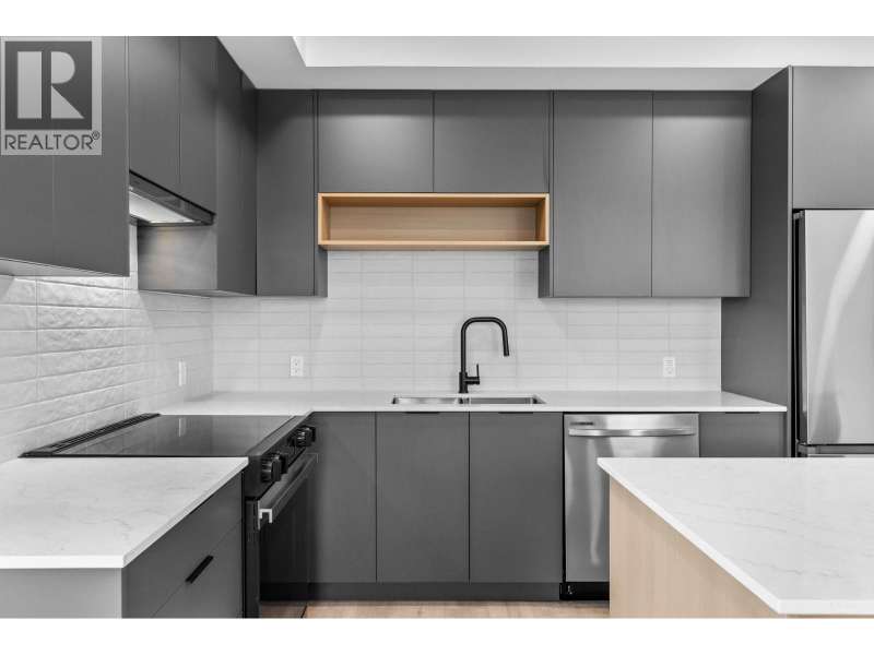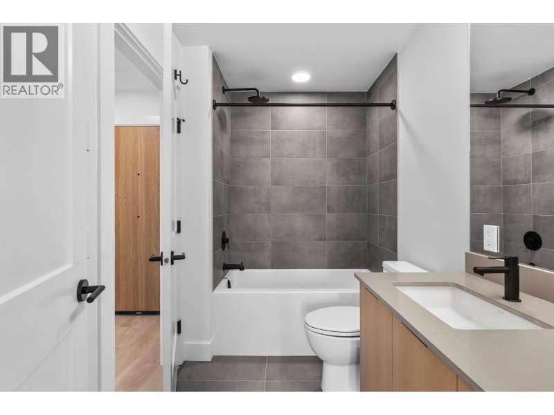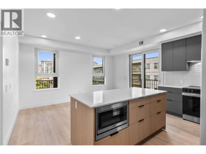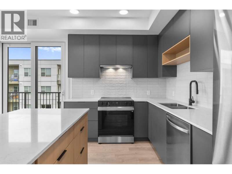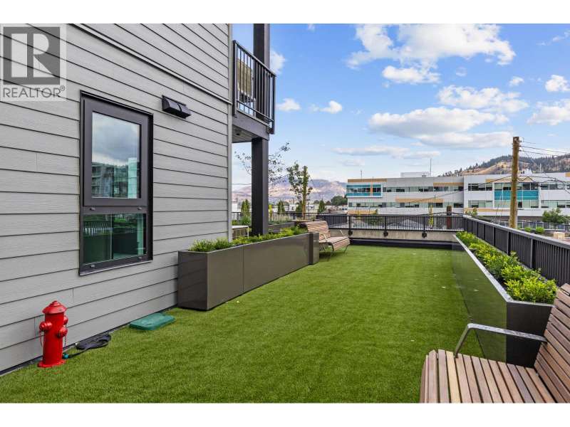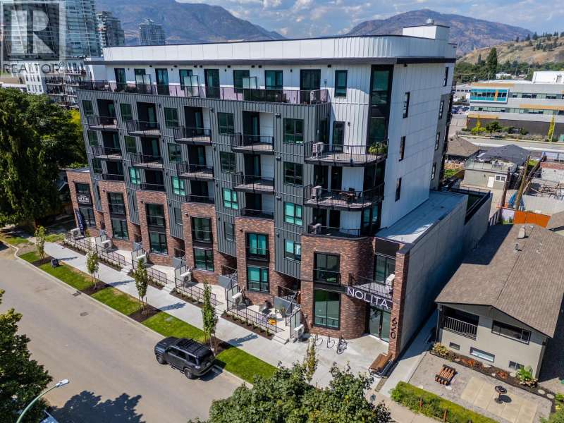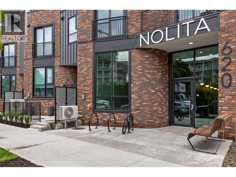 Welcome to Nolita Kelowna, a boutique six storey residential building by Fifth Avenue Properties nestled on a quiet, charming stretch of Coronation Avenue in downtown Kelowna’s vibrant Cultural District. This two bedroom, one bath corner unit features a generous wrap around patio, with direct access from both the living room and the master bedroom—perfect for seamless indoor/outdoor living. Inside, enjoy airy nine foot ceilings, quartz countertops, modern kitchens, tiled showers, roller shades, and in suite laundry. The price includes premium upgrades plus secure underground parking and storage. Residents benefit from a beautifully landscaped Terrace Lounge complete with BBQ kitchen, al fresco dining areas, fire tables and lounge seating, and a dedicated dog park for up to two pets per home. Additional amenities include secure, bike storage, smart building features such as 1Valet access and advanced security systems—all just steps from waterfront trails, craft breweries, boutique shopping, restaurants, the Packing District, and more OPEN HOUSE Mon- Thurs 11-7PM and Fri- Sun 11-5PM (id:58403)