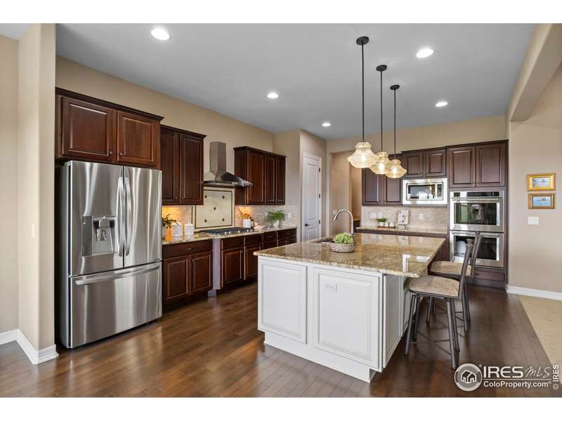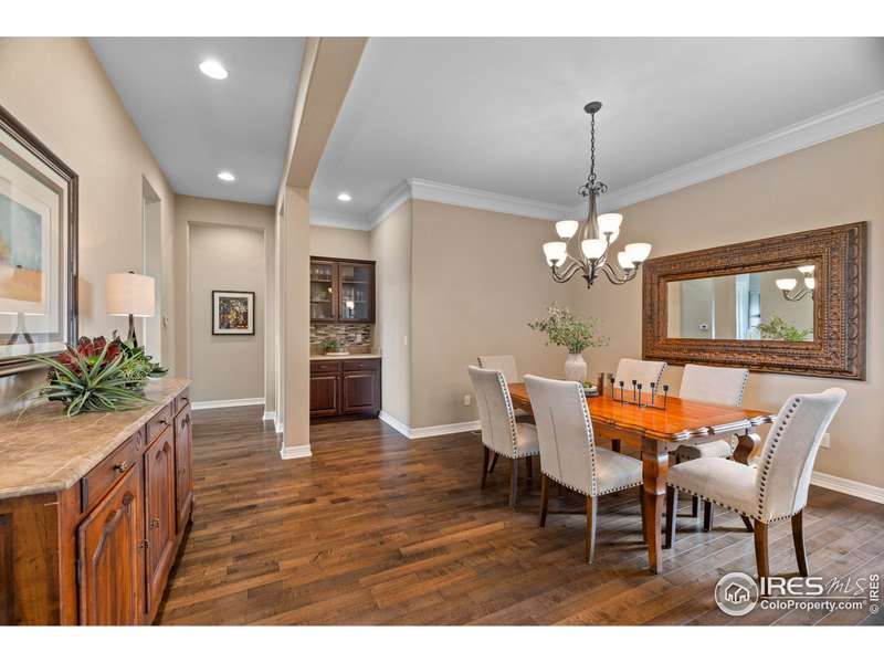 A rare opportunity exists to own the only Antero floorplan that has come to market since Toll Brother's completed Kechter Farm. Making this offering even more exceptional is the location which backs to private neighborhood open space with great views to the south and west. Enjoy spectacular sunrises & sunset from your covered deck year around! Lightly lived in and so well maintained, you'll think you are purchasing a new home. Upon entering you are met with soaring ceilings, a beautiful dining area with built-in cabinetry. This flows seamlessly to a grand family room, open kitchen with large granite island, beautiful cabinets, stainless steel KitchenAid appliances, and a sizable breakfast nook. This leads to a generously sized covered patio for ideal outdoor living. Entertain or live well - this floorplan provides multiple opportunities to do so! Large primary bedroom complete with five-piece bath & fantastic walk-in closet. Office space, 2nd bedroom with 3/4 bath, large laundry and convenient drop zone off of the 3-car garage complete the thoughtful layout on the main level. Head downstairs into the expansive, professionally finished basement with 11' ceilings. Third bedroom is well appointed with its own 3/4 bath and walk-in closet. Fourth bedroom has a convenient 3/4 bath with Jack & Jill entry to the large rec & game rooms. Fifth bedroom in basement could also be a great multi-purpose room - perfect for crafting/yoga/fitness/wellness pursuits! Built in wet bar and thoughtful layout of the rec room completes the basement offering. Unfinished storage as well. High end features abound including hot water recirculation throughout the house for hot water at the ready in every room; soft close cabinet drawers; and central vacuum