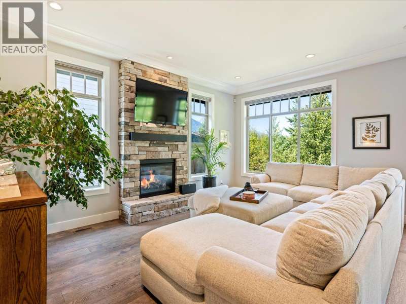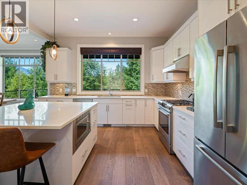 Located on one of the most coveted streets in University Highlands, this elegant 3-level home offers a rare blend of luxury, comfort, and natural beauty. Soaring ceilings and expansive windows frame breathtaking views of the Tantalus Mountain Range, filling the home with natural light. The chef-inspired kitchen features a generous island, walk-in pantry, and premium Bosch appliances-ideal for entertaining or everyday living. A main-floor bedroom and full bath provide flexibility for guests or multi-generational families. Upstairs, the primary suite is a private retreat with panoramic views, a spa-like ensuite, and a spacious dressing room. Two additional bedrooms complete the upper level. The lower level offers a versatile rec room opening to a covered patio, plus an additional bedroom and full bath-with potential to create a private suite. With Squamish´s renowned trail networks and parks just steps away, this home connects luxury living to the outdoors. SHOWINGS BY APPOINTMENT ONLY: Thurs 5-7, Sun 2-4. (id:58403)