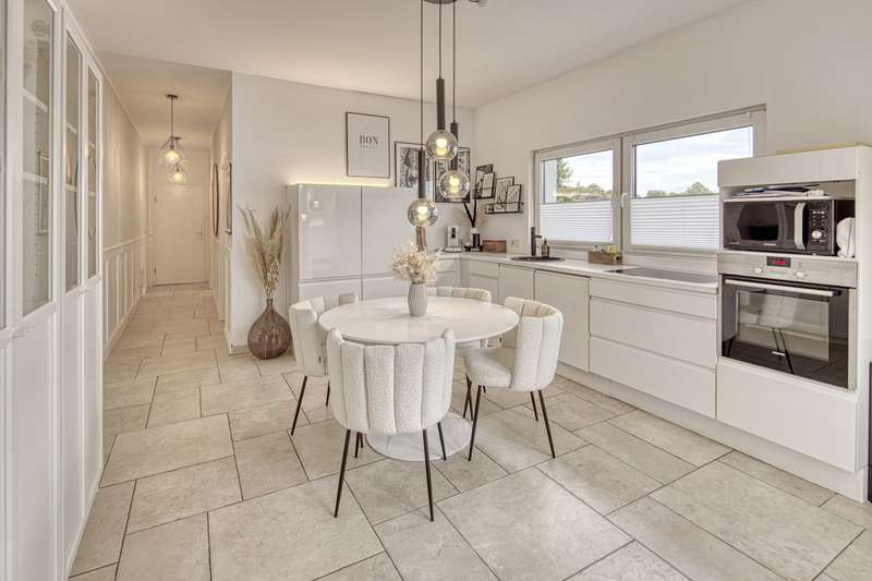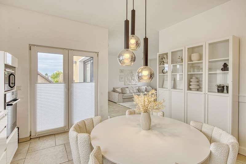 VON POLL IMMOBILIEN presents this attractive property in the heart of Pulheim. On a plot of approx. 730 m² with a living space of approx. 401 m², the apartment building offers a wide range of possible uses. Built in 2015, the house comprises a total of four residential units, which are characterized by their upscale furnishings and modern design. Each apartment is equipped with underfloor heating and electric shutters. The high-quality natural stone floors and triple-glazed plastic windows underline the high standard of the property. The first floor apartment, which offers around 163 m² of living space, is vacant and is ideal for private use. This residential unit has its own entrance and private garden, giving it a house-like character. A generous hallway leads into the spacious living room with access to the south-facing sun garden. A modern kitchen with dining area, a guest WC, three bedrooms, a utility room and a bathroom with shower and bathtub round off the offer on the first floor. The rental potential is around € 1,950.00 per month. There are two further residential units on the upper floor, which are currently rented out. The apartment on the left with a living space of approx. 75 m² offers two bedrooms, a daylight bathroom with bathtub and a large kitchen with open-plan living area and balcony. The monthly basic rent is € 962.00. The apartment on the right (approx. 65 m²) also comprises two bedrooms, a bathroom and a kitchen with an open-plan living area and access to the balcony. This apartment is rented for € 900.00 cold. The top floor houses a spacious apartment with approx. 91 m² of living space. Here you will find a bedroom with access to the roof terrace, a living and dining area with another roof terrace and another smaller room that can be used as a dressing room or study. An open kitchen completes the space on offer. This residential unit is currently rented out for € 1,250.00 cold. In addition, the house, which has a full basement, offers an expansion reserve in the basement. The rooms in the basement can be allocated to the individual apartments or to the first floor apartment alone so that it can be used as a maisonette. A kitchen and a modern bathroom are already integrated here. Another highlight are the six parking spaces, which provide ample parking for residents. The annual net cold rent is currently € 37,344.00. If the first floor unit is re-let, € 60,744.00 can be expected. The energy certificate is currently being applied for and is available for viewing.
