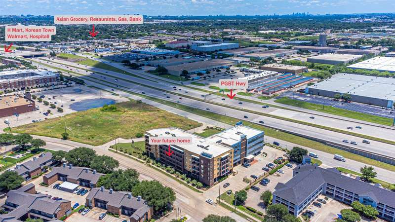Luxurious Carrollton Condo in Prime Location. Nestled in the heart of Carrollton, this elegant condo places urban convenience at your doorstep. Step outside and youre within minutes of H-Mart, 99 Ranch Market, a vibrant selection of restaurants, cafs, banks, and a hospital. Commuting is a breeze with quick access to PGBT, State Highway 121, and I-35making DFW Airport and Downtown Dallas just a short drive away.This rare, spacious floor plan boasts two generous bedrooms, two full baths, and a private balcony tucked away on the quiet side of the building. Hardwood flooring flows seamlessly through the open layout, while premium storm windows deliver exceptional noise reduction and energy efficiencyenhancing your comfort and peace of mind. The gated community features secure keypad entry, and the HOA takes care of water, trash, and security servicesso you can truly move in and relax. This condo is also for renting. Text agent for details.