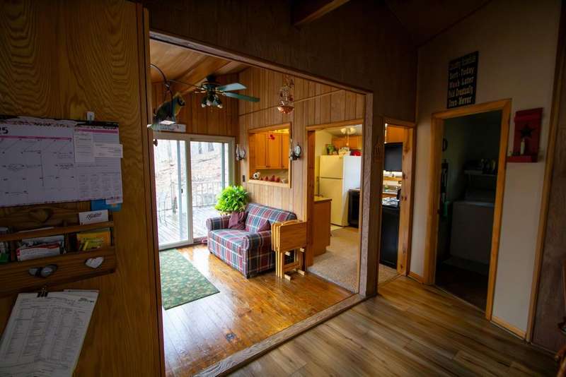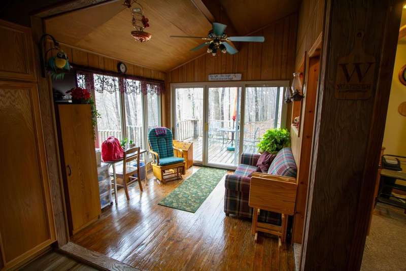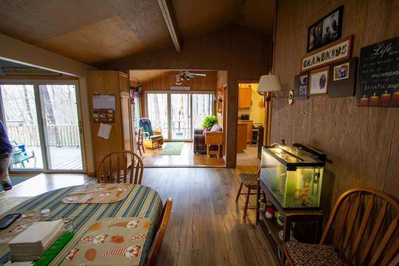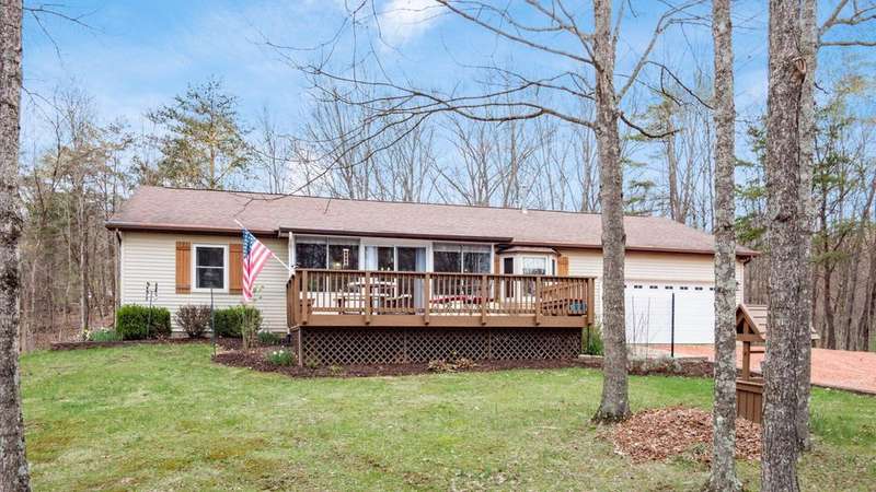 Tucked away in Hideaway Hills, just 10 minutes from US Route 33, this charming home offers 1,800 square feet of living space on 2 acres of beautiful natural surroundings. With 2 bedrooms and 1.5 bathrooms, and a 600 square foot garage adds plenty of space for storage, hobbies, or additional parking. The home is designed for comfort and ease, featuring a spacious living room that's perfect for gatherings and relaxation. Large windows throughout bring in abundant natural light, allowing you to enjoy stunning views of the tranquil landscape from nearly every room.Situated in the heart of nature, providing a peaceful retreat while still being just a short drive from local amenities; including a golf course, a lake, swimming pool, tennis courts, off-road track, and much more.