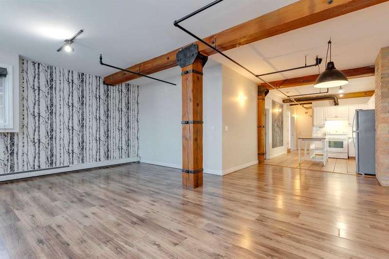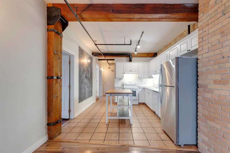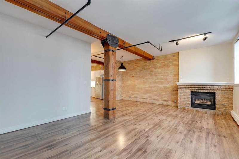Nestled in the heart of Calgary's Beltline, this extraordinary red brick loft offers a rare opportunity to own a piece of the city’s rich history. Constructed in 1912 for the Imperial Tobacco Company by the renowned A. Dale and Associates, the architectural firm behind the iconic Calgary Tower, this building underwent a stunning conversion to lofts in 1995. For the first time ever, these timeless residences are available for sale, blending historical charm with modern sophistication. Offering over 1,100 SqFt, this expansive loft exudes character with its original brick walls, exposed wood beams, and soaring ceilings. A wall of windows floods the space with natural light, creating a warm and inviting ambiance reminiscent of a classic New York City loft. The open-concept layout is thoughtfully designed, offering endless possibilities for both living and working. A private den provides the perfect space for a home or business office, while two generously sized bedrooms are complemented by a five-piece Jack and Jill bathroom plus there is an additional three-piece bathroom. The galley-style kitchen features freshly sprayed maple cabinetry with under mount lighting, moveable island, and a seamless flow into the dining and living areas. Whether you envision this space as your personal sanctuary or a dynamic live/work environment, the possibilities are as limitless as your imagination. Beyond the loft itself, the building offers an array of amenities, including a gym, a games room, and a rooftop patio with breathtaking views of the Downtown Skyline. A titled underground parking spot is also included, ensuring convenience in this vibrant urban setting. This is more than a home; it’s a lifestyle. A rare blend of history, elegance, and modernity, this loft is a once-in-a-lifetime opportunity to own a truly unique piece of Calgary’s architectural heritage.