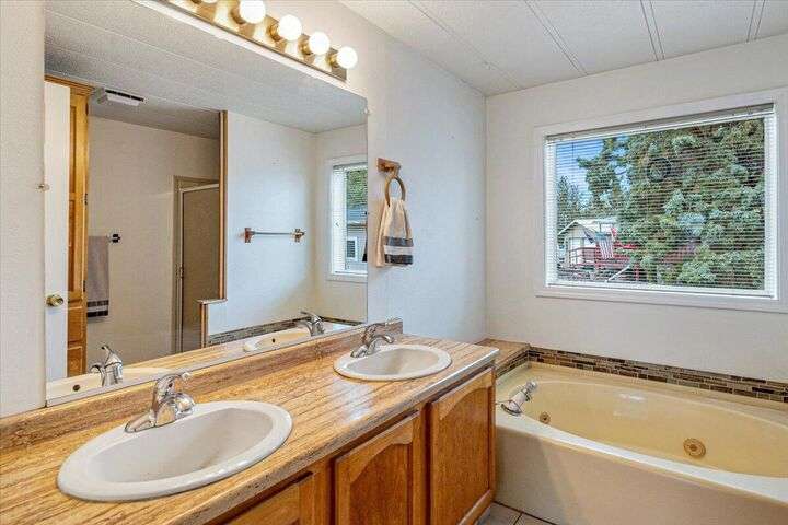 Craving the quiet of country living without giving up convenience? Welcome home to this beautifully maintained 2-bed, 2-bath gem in the heart of Terrebonne. Step into a spacious great room with gleaming tile floors, a cozy wood stove, and oversized windows that flood the space with natural light. The bright and cheery kitchen features granite countertops, a stone backsplash, and sleek black appliances—plus a dining area with a built-in china cabinet. The oversized primary suite feels like a retreat with its private deck access, jetted tub, separate shower, and generous storage. A large laundry/mudroom adds everyday ease with even more storage and direct access to the backyard & back deck. Set on a fully fenced, .32-acre lot, this home has room to play, plant, and park—with underground sprinklers, RV hookups, and a brand-new septic system (2023) Cascade Views too!!
