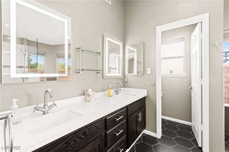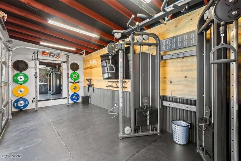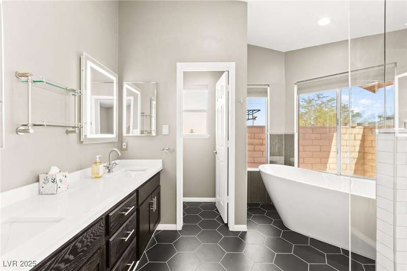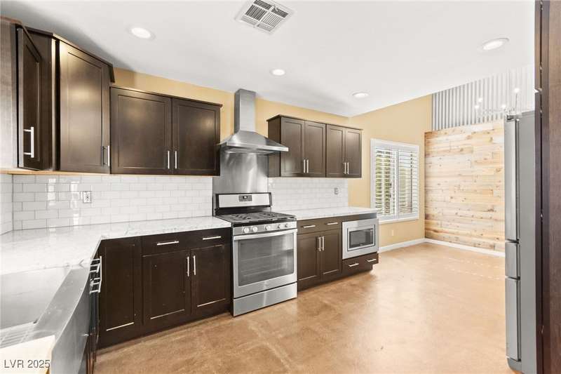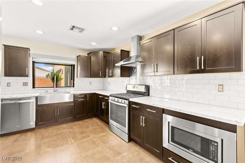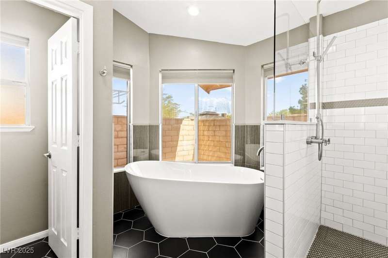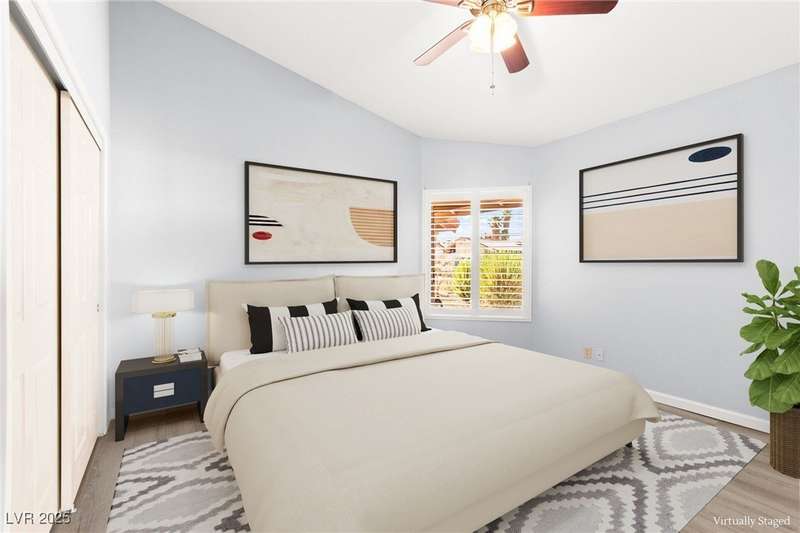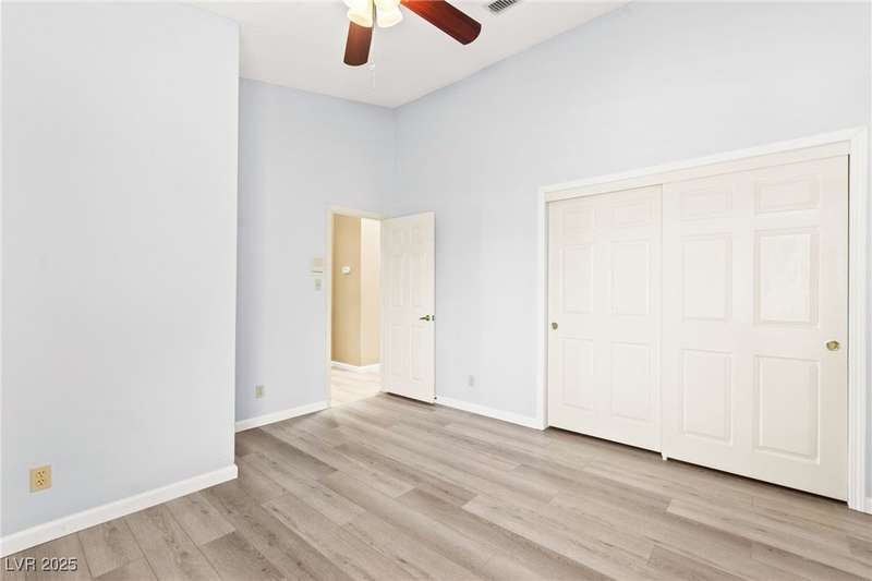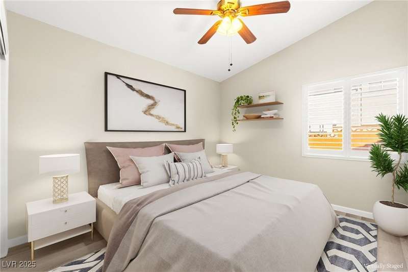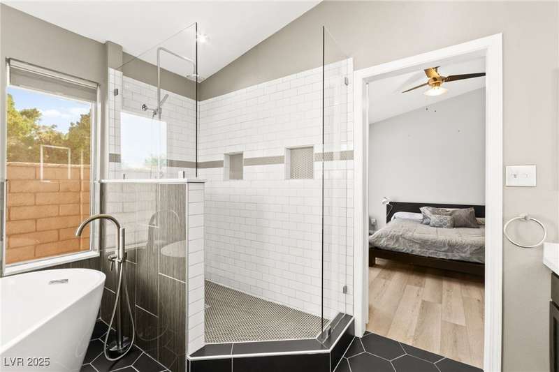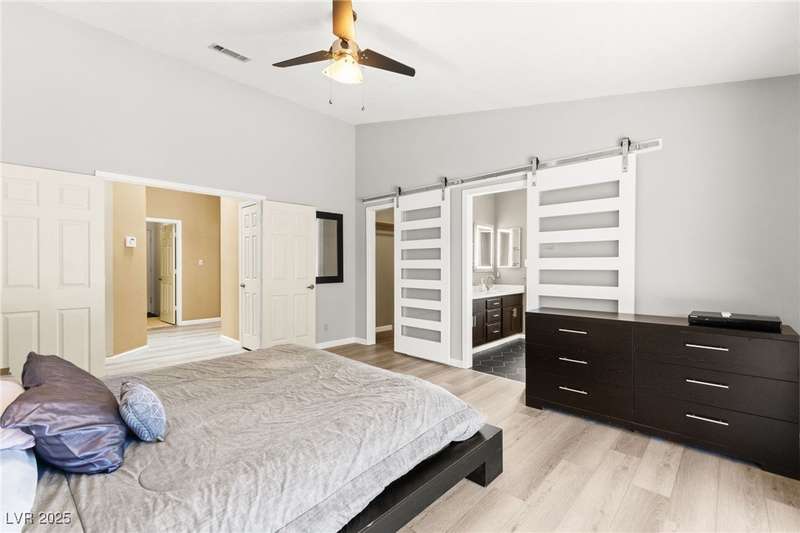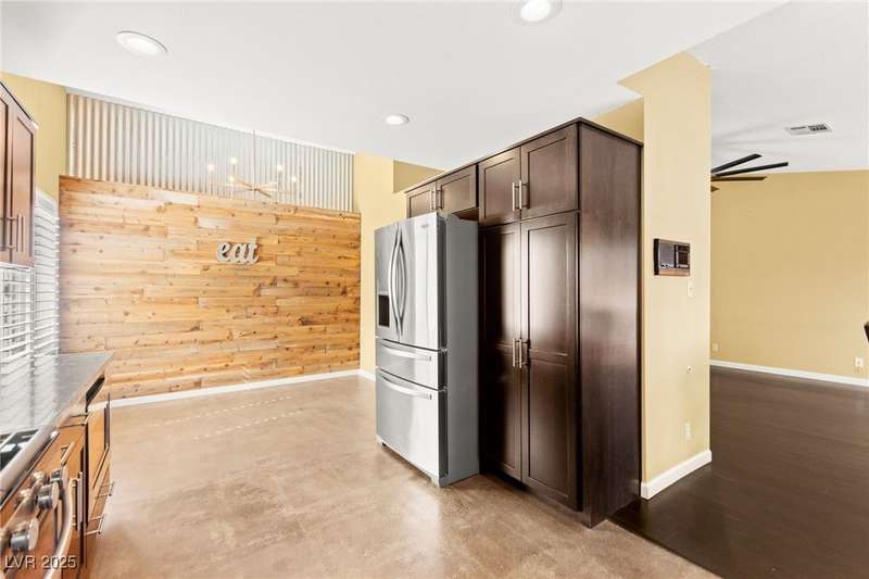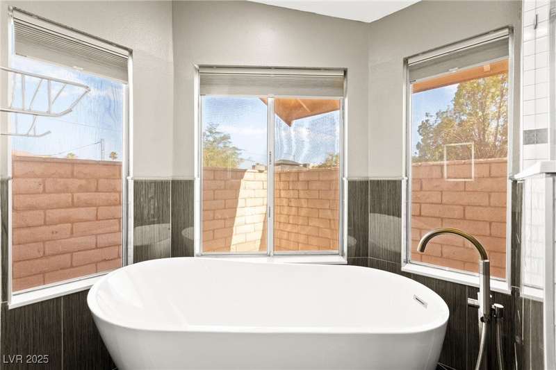 Fully remodeled single-story home featuring three bedrooms and two bathrooms, plus a flexible front room that can serve as a fourth bedroom or home office (complete with a closet). The spacious layout includes vaulted ceilings, a family room with a cozy fireplace and wet bar, a formal dining room, and a bright breakfast nook. The upgraded kitchen offers soft-close cabinets and stainless steel appliances. The primary suite boasts a skylight and a bathroom with a separate tub and shower. Outside, enjoy the backyard oasis with a pool, spa, and patio. A separate building in the backyard has been converted into a home gym with its own AC and security doors. Additional highlights include a three-car garage, RV/boat parking, and no HOA. Located in an established neighborhood near Boca Park and just minutes from Downtown Summerlin.