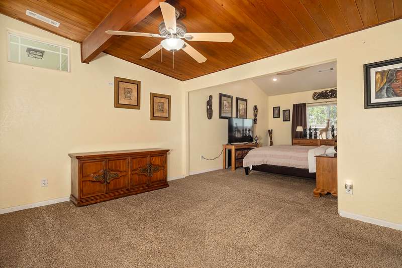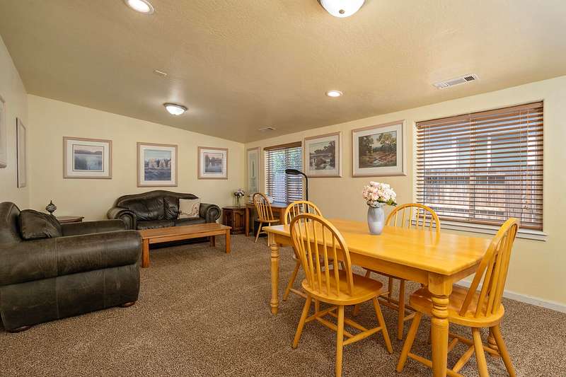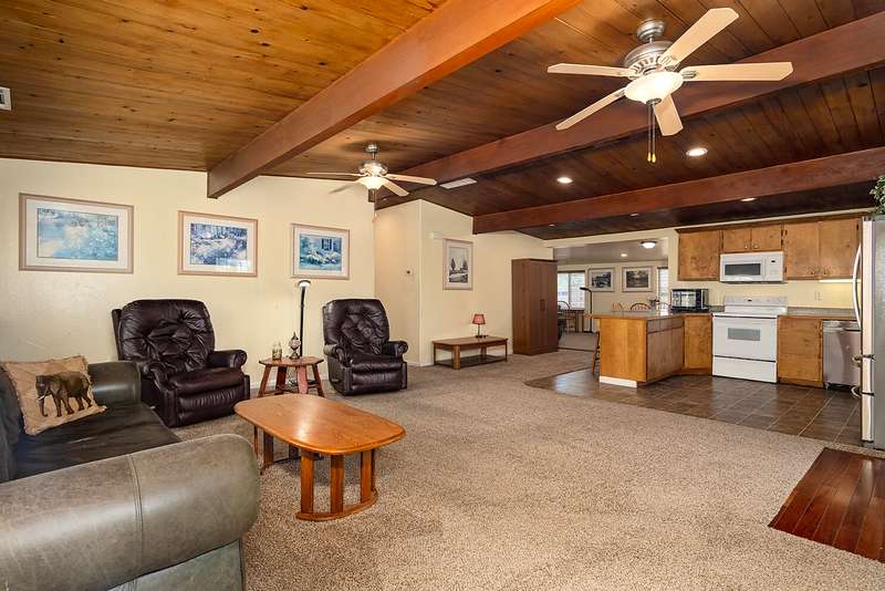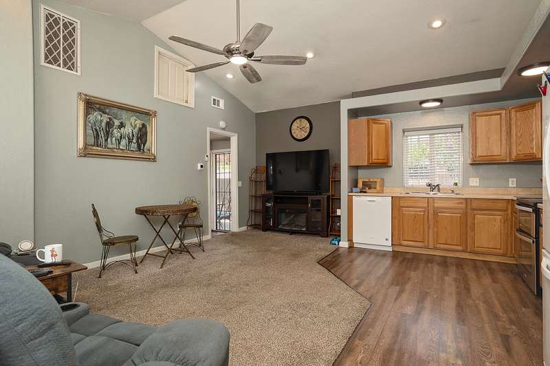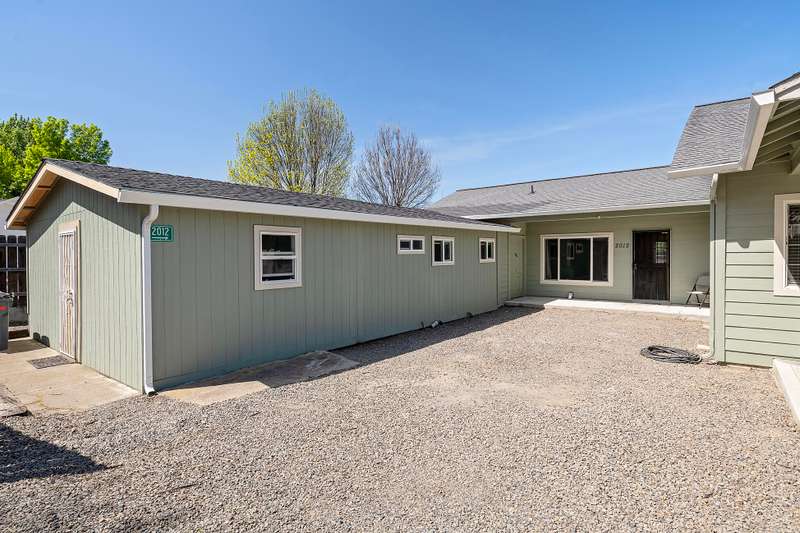 Discover the perfect two-family setup or an exceptional investment property with two houses on one tax lot! The front home boasts 1,674 sq ft of spacious living, featuring 3 bedrooms and 2 baths, two generous living areas, and a dining room that flows seamlessly into the open-concept kitchen with a charming breakfast bar. You'll love the exposed wood vaulted ceilings and rich wood accents throughout, creating a warm and inviting atmosphere. Between the homes there is RV parking with hookups. The back house is a 1 bed, 1 bath suite complete with a bonus sitting room/office and a private patio, perfect for extended family, guests, or tenants. Recent updates include a new roof, updated HVAC system, and several replaced windows. There's even a separate storage structure with plumbing and electrical offering endless possibilities for a studio or workshop. This unique property offers a strong investment potential—don't miss your chance to own this one-of-a-kind opportunity!