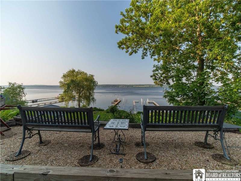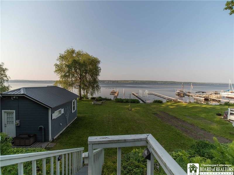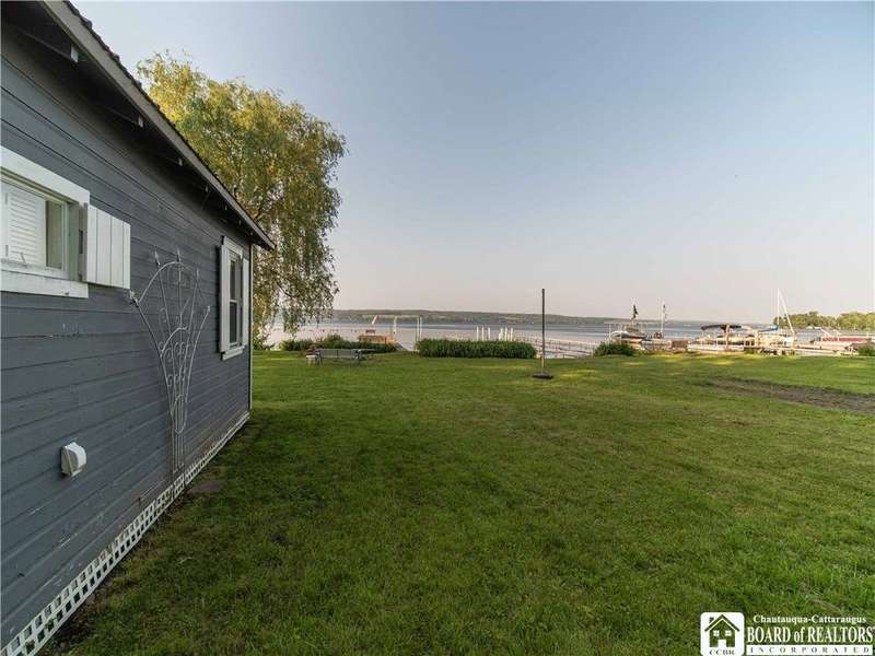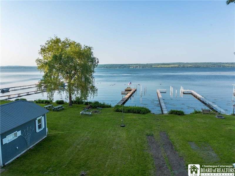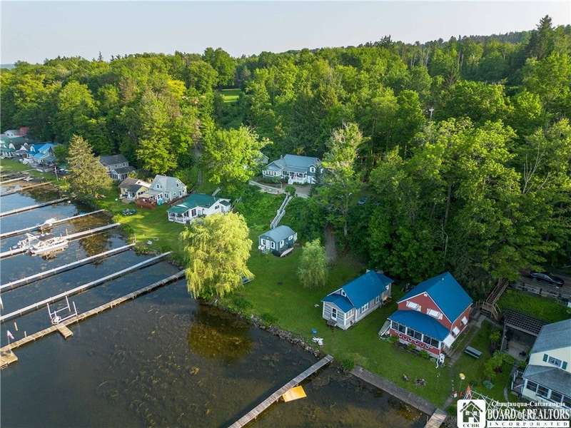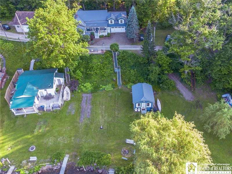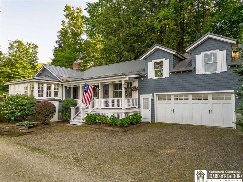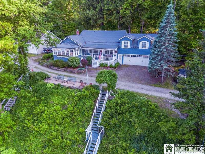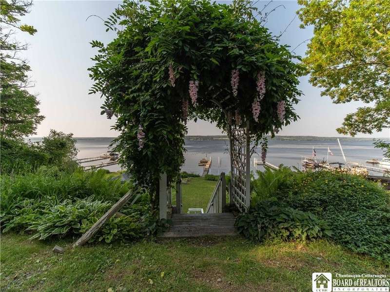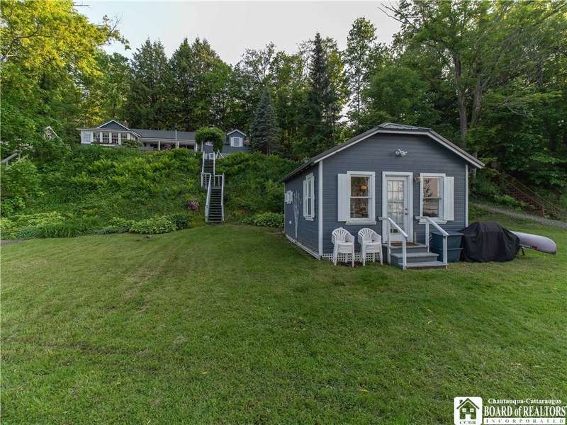 Tucked away on a quiet dead-end road, this charming lakefront cottage at 4896 Ashville Bay Road offers the perfect blend of comfort, character, and natural beauty. With over 141 feet of Chautauqua Lake frontage between five total parcels, this is the kind of place where memories are made and summers seem to last a little longer.Step onto the welcoming covered porch and take in sweeping lake views that carry through to the bright, year-round sunporch?a cozy spot for morning coffee, reading a good book, or watching the boats drift by. The living room features a classic fireplace and opens into a sweet dining nook, creating a warm and relaxed gathering space.Inside, the main bedroom includes an en-suite bath and generous closet space, while two additional bedrooms, a full hallway bathroom, plus a large bunk room with a full bathroom offer plenty of room for family and guests. The kitchen is spacious and full of potential, ready for your personal touch to make it your own.With two ways to get down to the water, either down the staircase or ride down/ load up the mule that is being sold with the property to the darling guest cottage, adds to the storybook charm with its own living/bedroom, full bath, and kitchenette?ideal for visitors or peaceful escapes just steps from the lake.The attached garage, expansive lot next door, provide for extra parking, and lush landscaping complete this one-of-a-kind lakeside retreat. Whether you're looking for a year-round fully furnished home or a seasonal getaway, this sweet lakeside cottage is ready to welcome you.