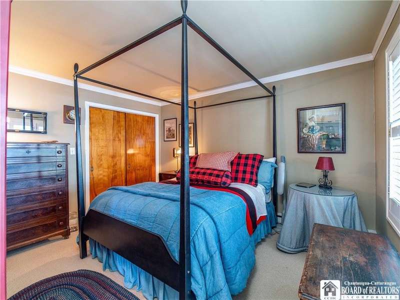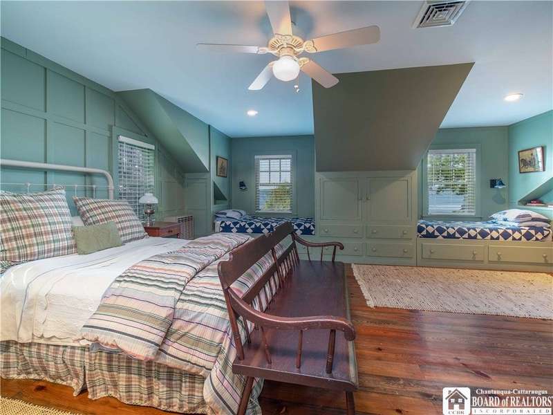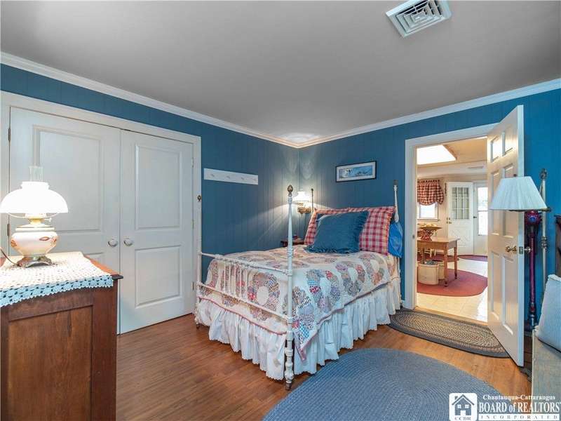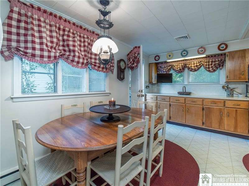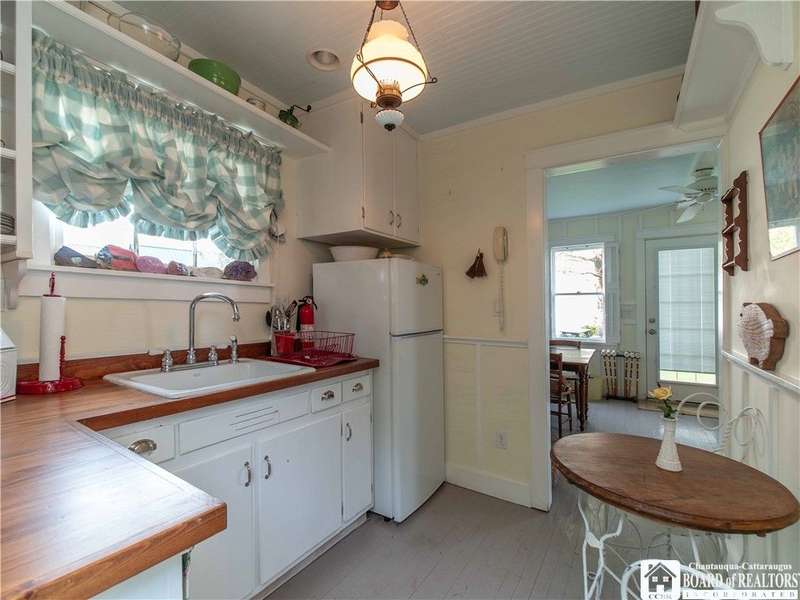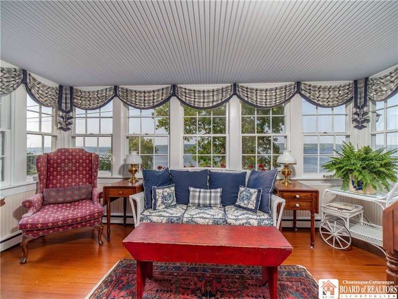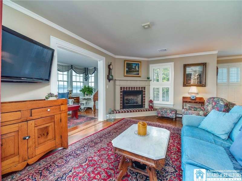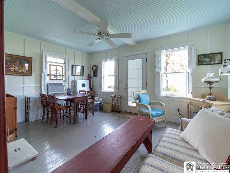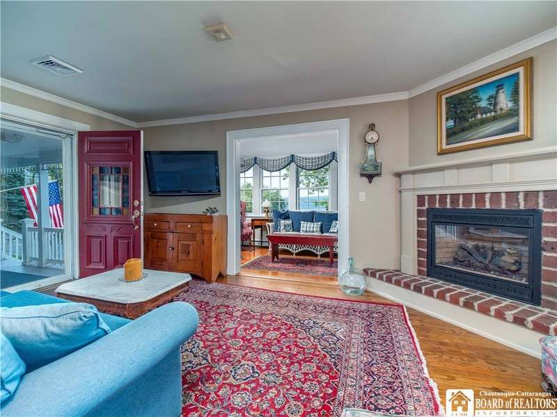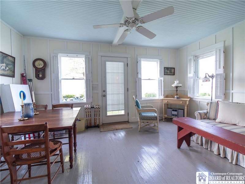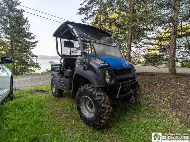 Tucked away on a quiet dead-end road, this charming lakefront cottage at 4896 Ashville Bay Road offers the perfect blend of comfort, character, and natural beauty. With over 141 feet of Chautauqua Lake frontage between five total parcels, this is the kind of place where memories are made and summers seem to last a little longer.Step onto the welcoming covered porch and take in sweeping lake views that carry through to the bright, year-round sunporch?a cozy spot for morning coffee, reading a good book, or watching the boats drift by. The living room features a classic fireplace and opens into a sweet dining nook, creating a warm and relaxed gathering space.Inside, the main bedroom includes an en-suite bath and generous closet space, while two additional bedrooms, a full hallway bathroom, plus a large bunk room with a full bathroom offer plenty of room for family and guests. The kitchen is spacious and full of potential, ready for your personal touch to make it your own.With two ways to get down to the water, either down the staircase or ride down/ load up the mule that is being sold with the property to the darling guest cottage, adds to the storybook charm with its own living/bedroom, full bath, and kitchenette?ideal for visitors or peaceful escapes just steps from the lake.The attached garage, expansive lot next door, provide for extra parking, and lush landscaping complete this one-of-a-kind lakeside retreat. Whether you're looking for a year-round fully furnished home or a seasonal getaway, this sweet lakeside cottage is ready to welcome you.