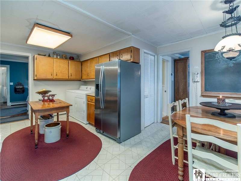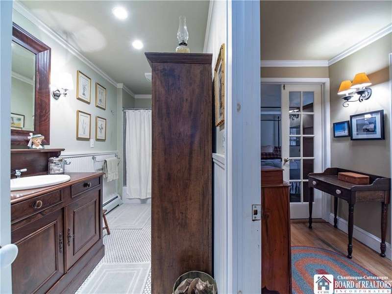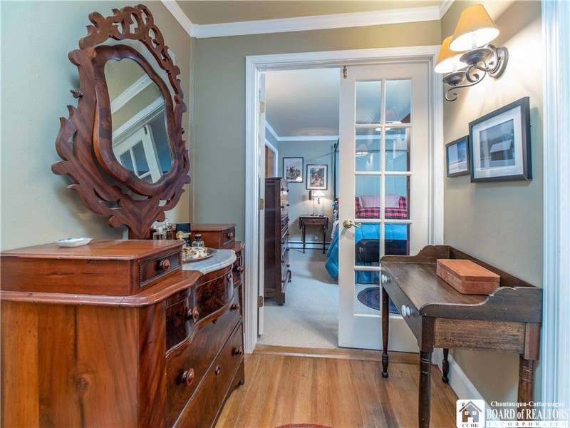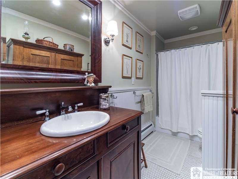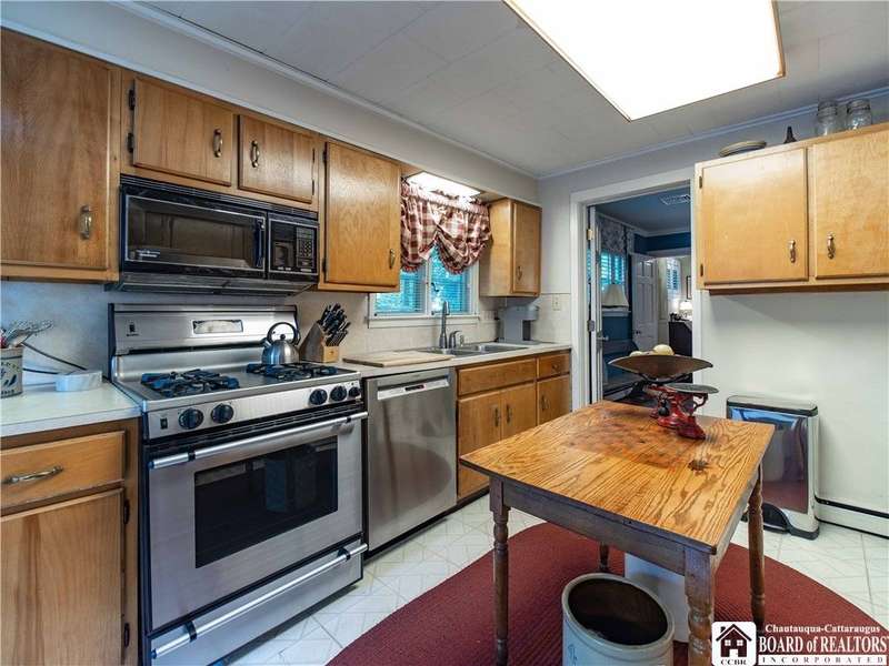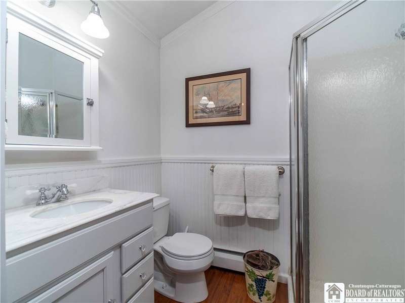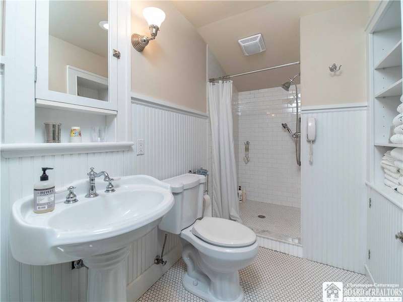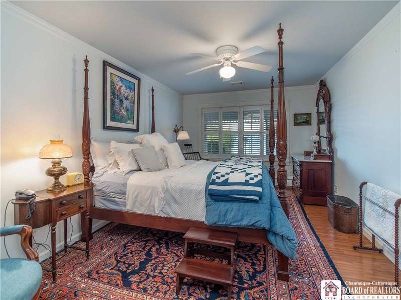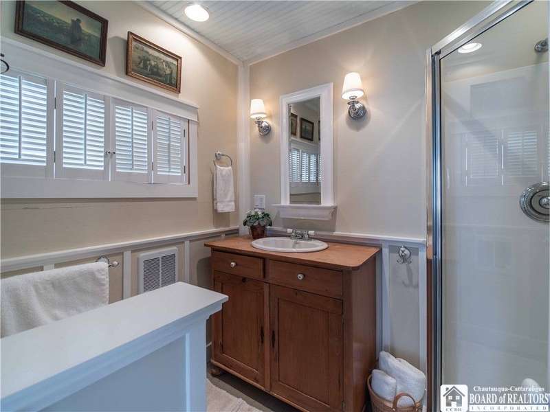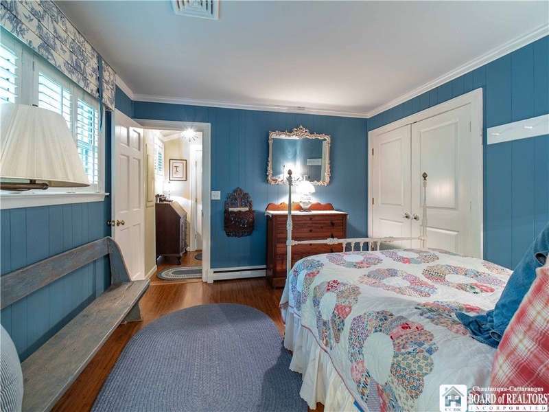 Tucked away on a quiet dead-end road, this charming lakefront cottage at 4896 Ashville Bay Road offers the perfect blend of comfort, character, and natural beauty. With over 141 feet of Chautauqua Lake frontage between five total parcels, this is the kind of place where memories are made and summers seem to last a little longer.Step onto the welcoming covered porch and take in sweeping lake views that carry through to the bright, year-round sunporch?a cozy spot for morning coffee, reading a good book, or watching the boats drift by. The living room features a classic fireplace and opens into a sweet dining nook, creating a warm and relaxed gathering space.Inside, the main bedroom includes an en-suite bath and generous closet space, while two additional bedrooms, a full hallway bathroom, plus a large bunk room with a full bathroom offer plenty of room for family and guests. The kitchen is spacious and full of potential, ready for your personal touch to make it your own.With two ways to get down to the water, either down the staircase or ride down/ load up the mule that is being sold with the property to the darling guest cottage, adds to the storybook charm with its own living/bedroom, full bath, and kitchenette?ideal for visitors or peaceful escapes just steps from the lake.The attached garage, expansive lot next door, provide for extra parking, and lush landscaping complete this one-of-a-kind lakeside retreat. Whether you're looking for a year-round fully furnished home or a seasonal getaway, this sweet lakeside cottage is ready to welcome you.