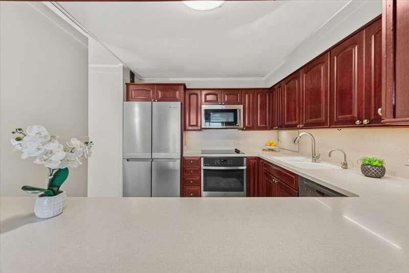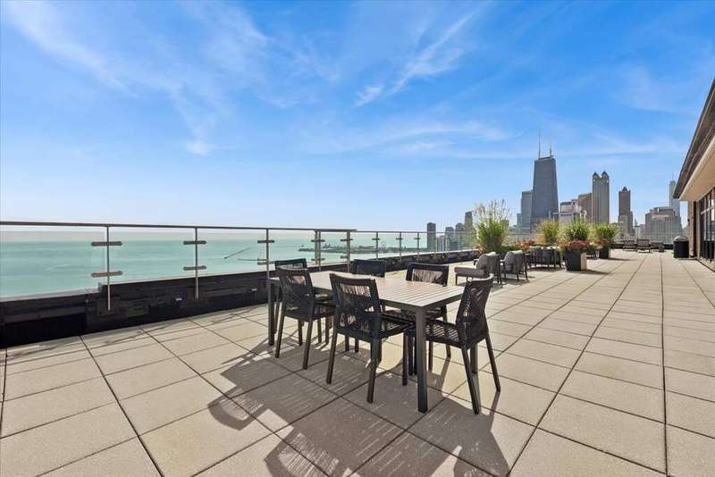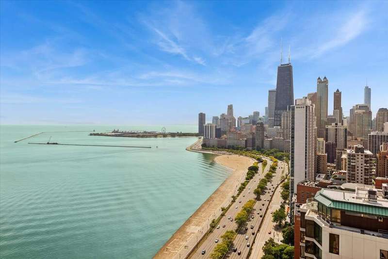 Resort-style living with unobstructed views of Lake Michigan, Oak Street Beach, Navy Pier & the city skyline from this stunning 28th-floor Gold Coast condo! Enjoy the ultimate city lifestyle with direct access to the lakefront trail and the Mag Mile's dining and shopping just minutes away. Inside, hardwood floors, designer finishes & fresh paint create a polished backdrop. Open-concept living/dining with motorized blinds offers breathtaking vistas from every room. The sleek kitchen features Corian counters with seamless backsplash, Thomasville cabinetry, touchless faucet (2024), KitchenAid fridge (2024) & brand-new GE cooktop/oven (2025). The king-sized primary suite includes a walk-in closet, while both renovated baths showcase timeless tile, dual-swing glass shower doors & Roburn medicine cabinets. Bedrooms feature west-facing windows with spectacular sunsets. Additional highlights include Elfa-organized closets with upgraded Sliding Door Company doors, rare in-unit Bosch washer/dryer, new living room A/C (2024) & custom hallway built-ins for excellent storage. Full-service building with 24-hr door staff, fitness center, rooftop sundeck, party room, updated lobby & dry-cleaning pick up / drop off service. Rental parking available for multiple cars.