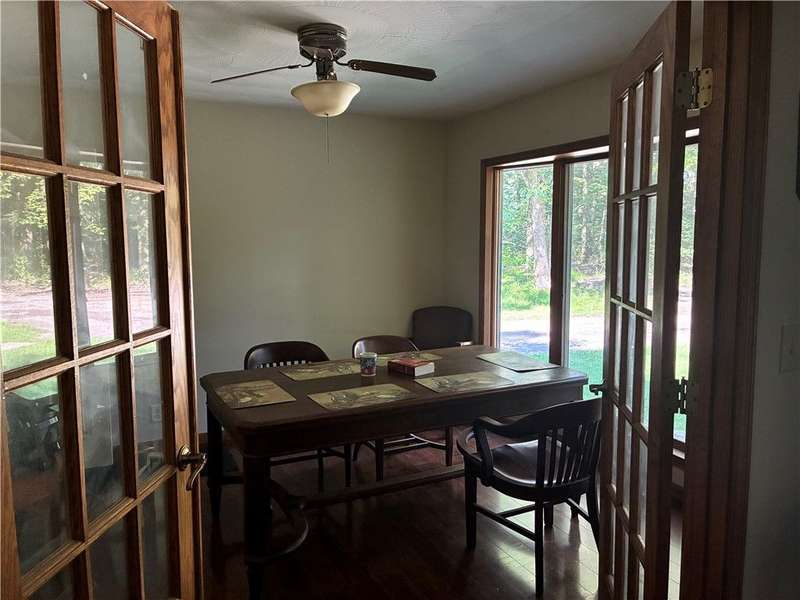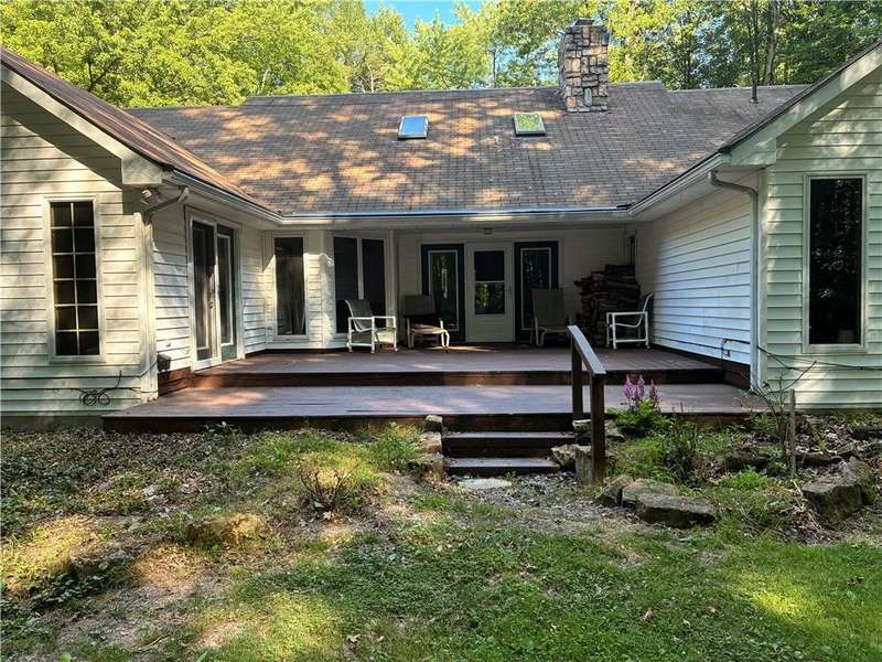 Discover a private sanctuary tucked away on 5.50 lush, wooded acres. This generous residence blends modern comfort with rustic charm, offering ample room to live, work, and play. Great Rm is a combo of EIK w/bar and Fam Rm with FP. Primary suite has a Walkin closet, full bath with garden tub, French doors to deck. Special Anderson windows throughout (you can see out but can't see in). LG walkout basement ready to finish. 2 1/2 car attached garage. Zoned as Neighborhood Mixed Use. Ready to make this wooded oasis your everyday retreat? schedule a tour.