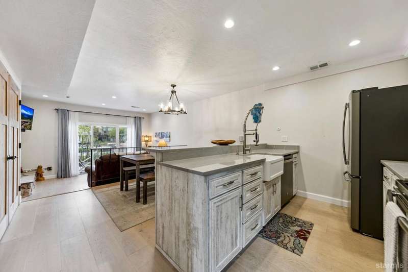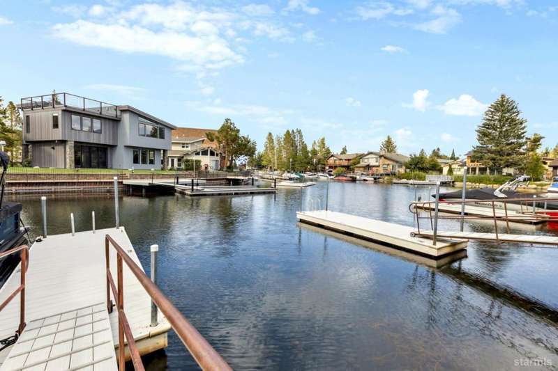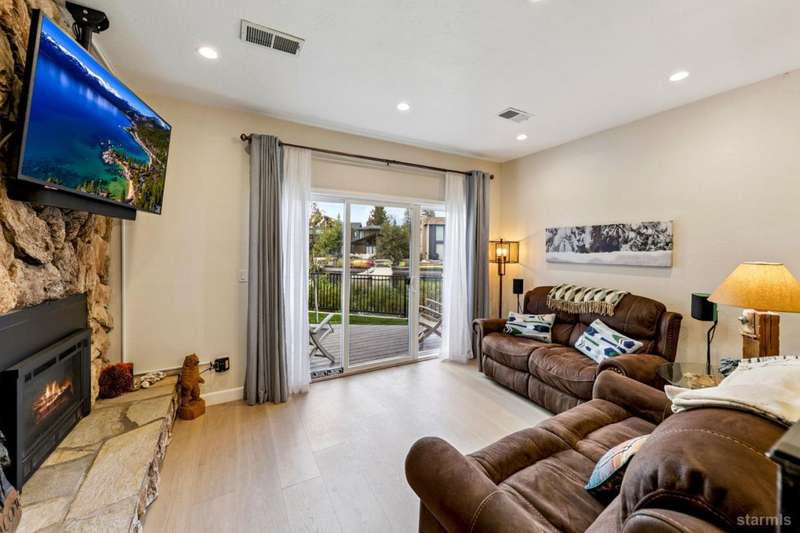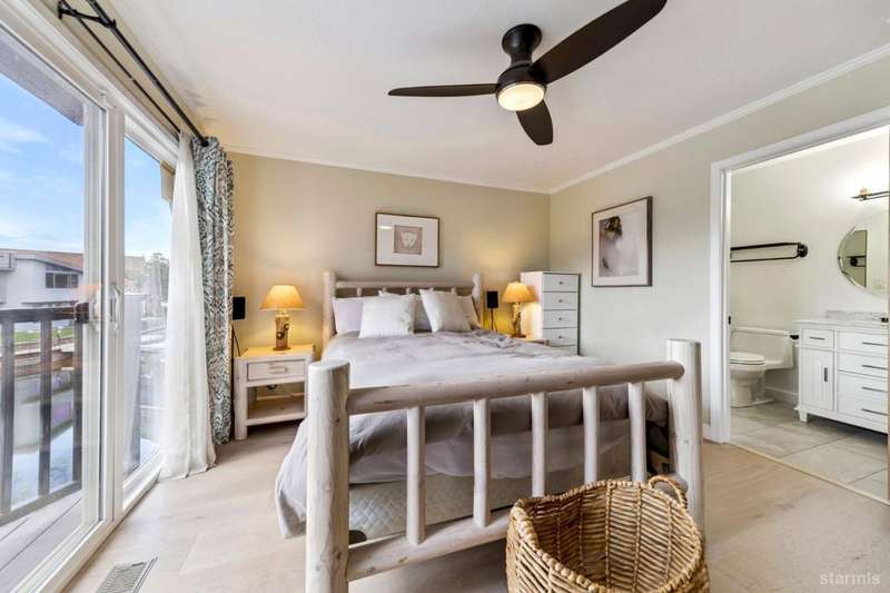 Discover waterfront living at its finest in this beautifully updated three-bedroom, three-bathroom townhouse in the Tahoe Keys. This recently refreshed property offers a downstairs living layout with direct access to your boat slip right outside the back door.The main living area features laminate flooring throughout, a gas fireplace, recessed lighting, and beautiful water views. The updated kitchen features custom cabinets paired with luxurious quartz countertops, stainless steel appliances, and a charming farm-style sink.The ground level includes a bedroom with an en-suite bathroom featuring a new vanity, updated fixtures, and tile flooring. Upstairs, you'll find two additional bedrooms, each with their own private bathrooms. The rear bedroom offers a private balcony with breathtaking lagoon and mountain views and a completely renovated bathroom showcasing custom tile work, contemporary fixtures, and a sleek new vanity with a modern stall shower. The front bedroom provides generous space and includes an updated bathroom with a tub.Throughout the home, you'll appreciate the quality solid knotty alder doors and efficient forced air heating system. A large exterior storage area adds a place for the outdoor sporting equipment, and the property comes fully furnished for immediate enjoyment.As a Tahoe Keys homeowner, you'll enjoy exclusive access to the amenities including indoor and outdoor pools, private beaches, tennis courts, pickleball facilities, and much more, making this the perfect Lake Tahoe retreat.