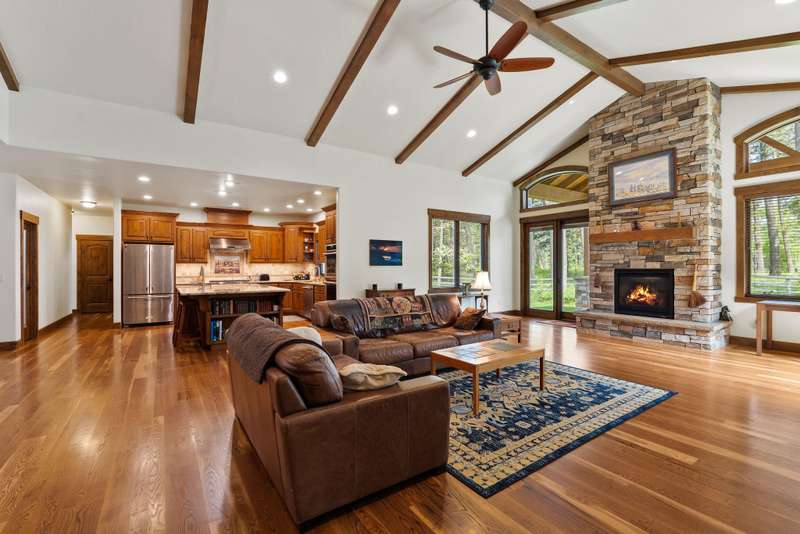Stunning single-level custom home with breathtaking views of the Swan Mountains! This thoughtfully designed 3BD/3BA home sits on 1.127 acres and offers 3,123 SF of light-filled living space. Each bedroom features its own ensuite bath for optimal comfort and privacy. The open floor plan boasts vaulted ceilings with exposed wood beams, a floor-to-ceiling natural gas stone fireplace, and a chef's kitchen complete with top-of-the-line Thermador appliances, custom Knotty Alder cabinetry, and granite countertops. Enjoy the beautifully landscaped and fully fenced back yard, perfect for pets, with RV parking and an oversized 3-car garage for storage of cars and toys. Located just minutes from Glacier National Park and Flathead Lake, this home offers the perfect balance of luxury, functionality, and Montana beauty. See Feature Sheet in Docs.