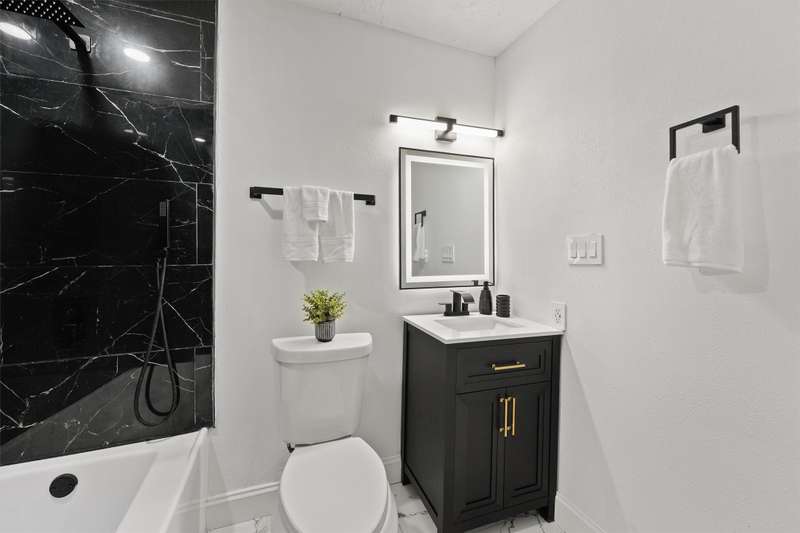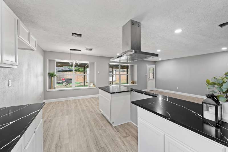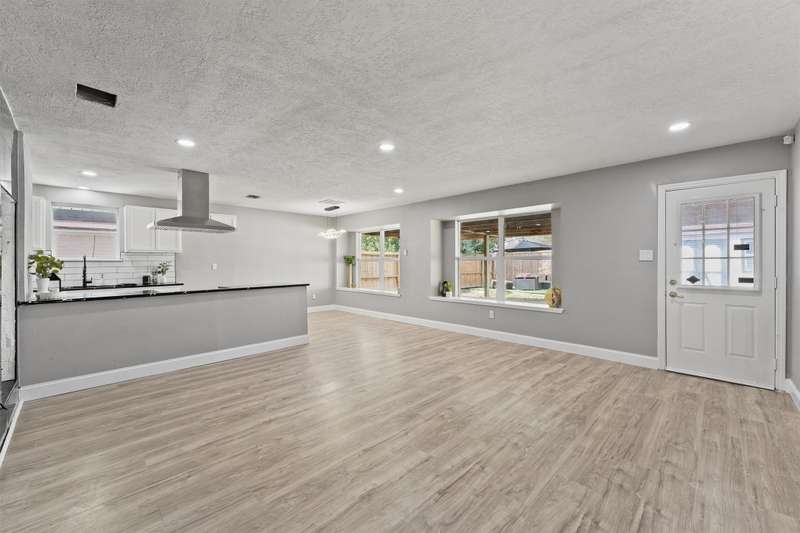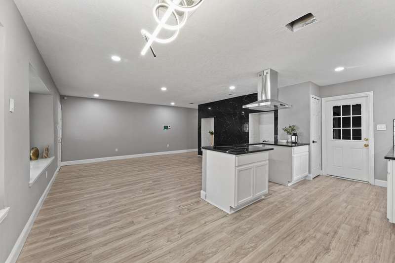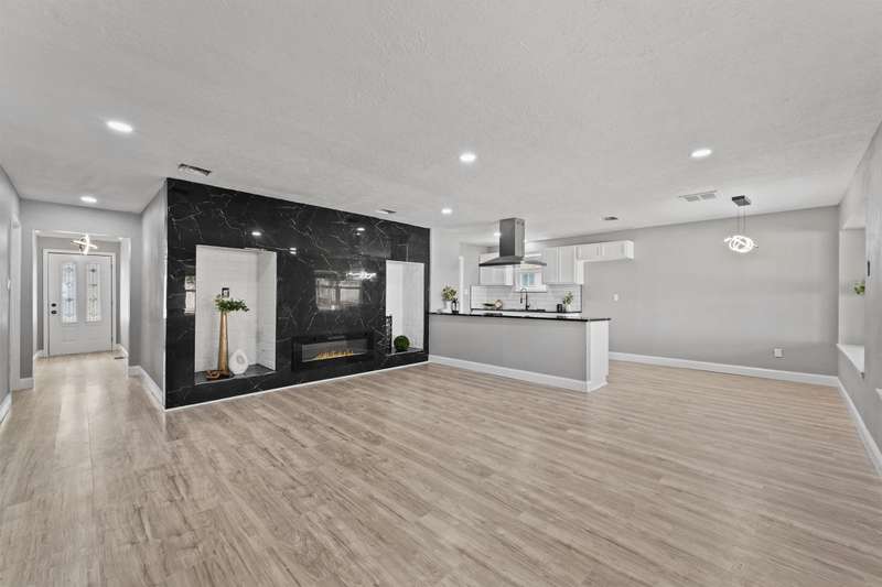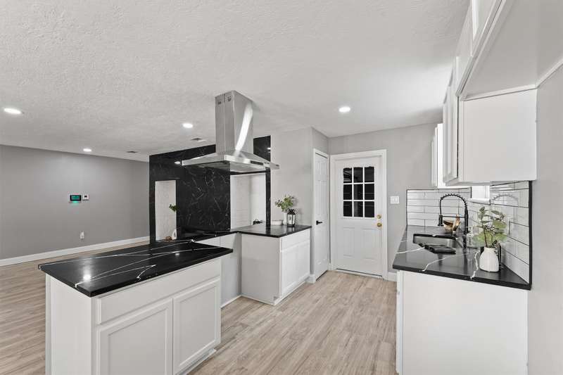 Beautifully updated 4-bedroom, 2-bath home with modern finishes inside and out! This move-in-ready property features a new roof, fresh interior paint, and stylish upgrades throughout. Step inside to an open and spacious layout with new flooring, recessed lighting, and a sleek, redesigned kitchen complete with black stone countertops, white cabinetry, and a striking waterfall island overlooking the living area. The bathrooms have been tastefully renovated with contemporary tile, upgraded fixtures, and clean modern touches. Enjoy a large covered patio perfect for gatherings, plus a generous backyard with plenty of room to personalize. With its fresh updates, functional layout, and excellent curb appeal, this home is perfect for families or anyone looking for a turnkey property in a convenient location. A must-see!