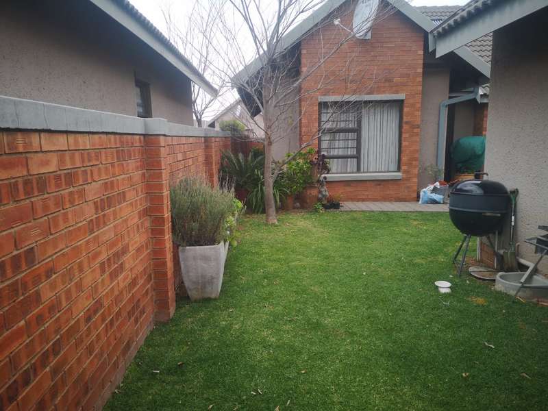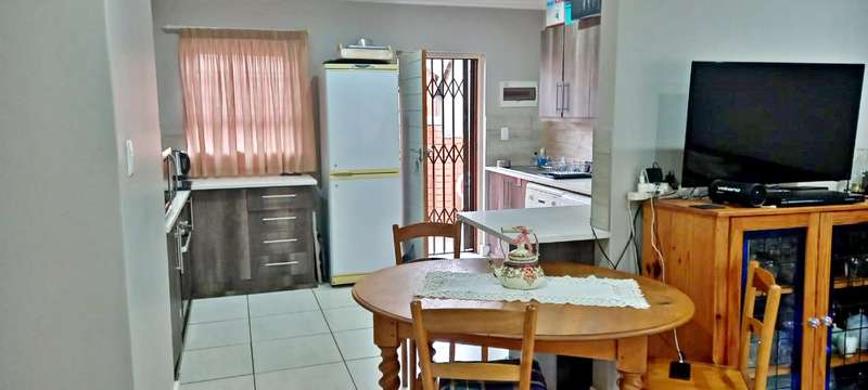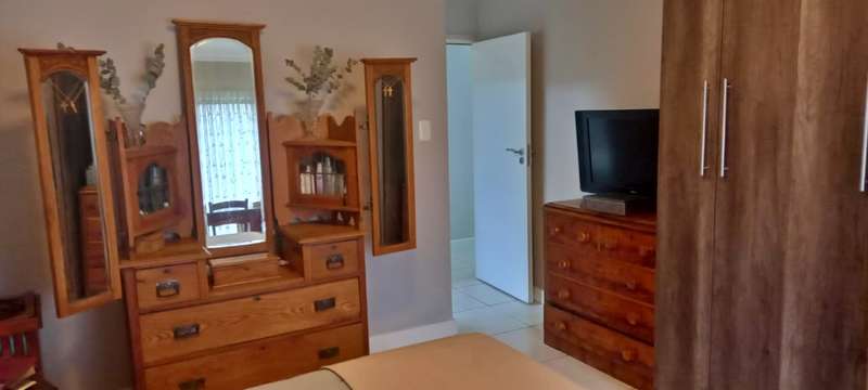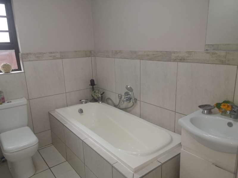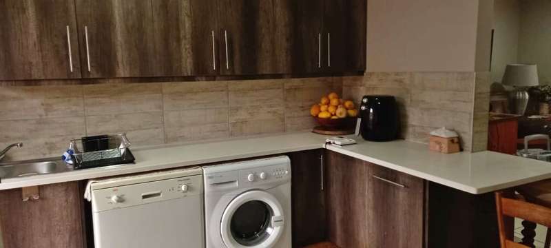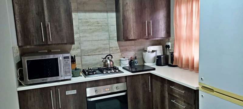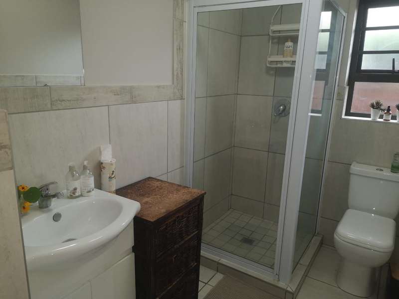 Modern 2 bedrooms, 2 bathrooms, open plan lounge, kitchen with modern built-in cupboards. Double garage, lovely garden, small dog allowed no cats. Pre-paid water and electricity.
