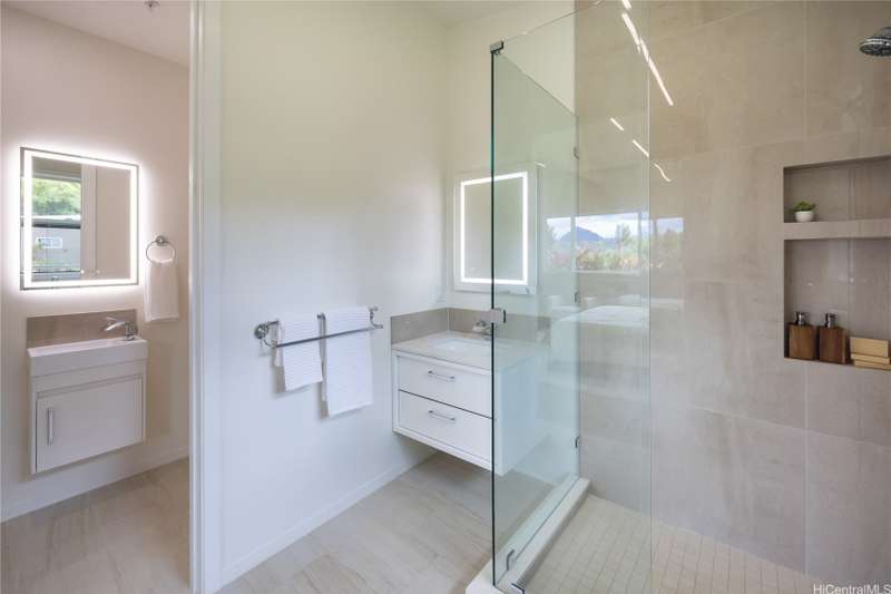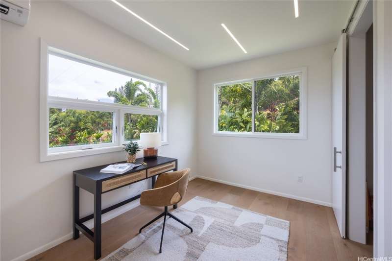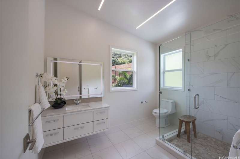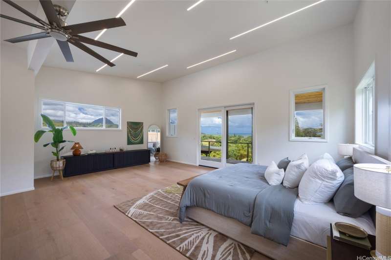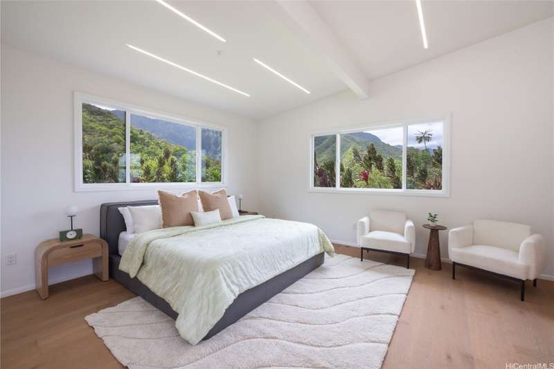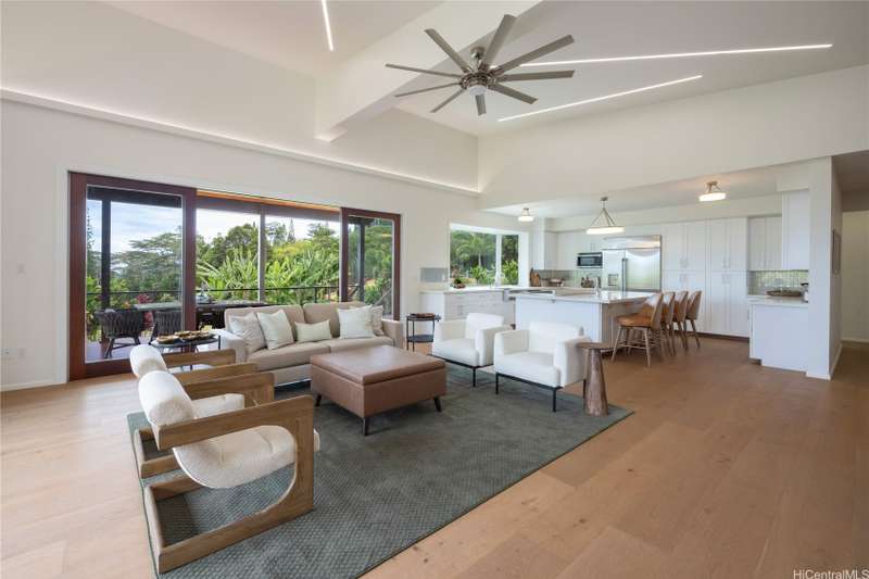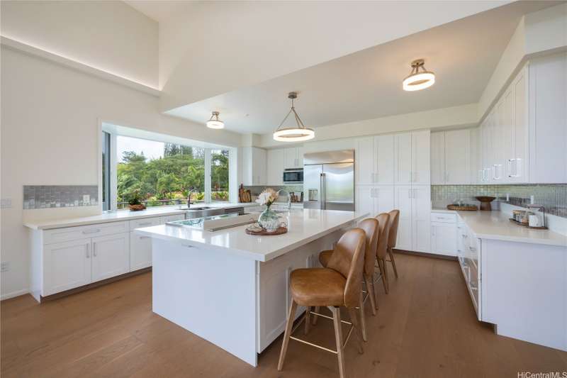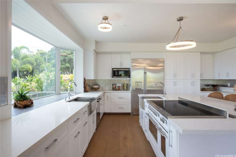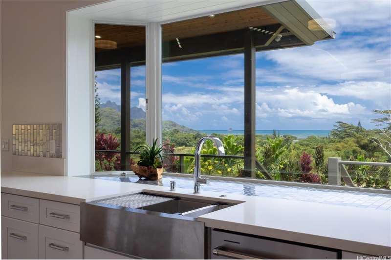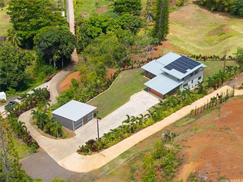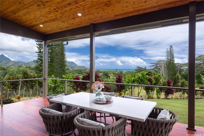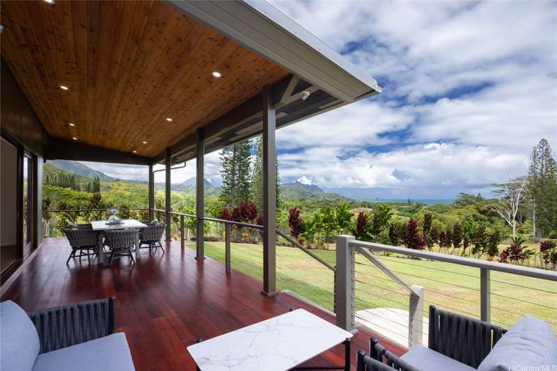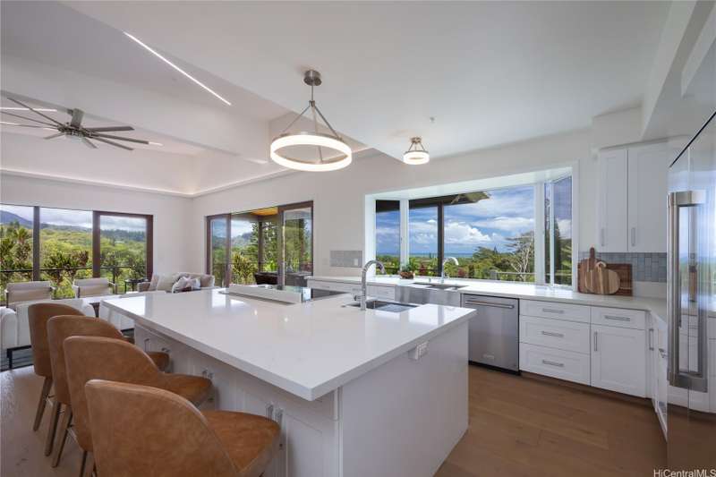 Prominently situated at the base of the Ko'olau Mountain, a newly built Luxury Country Estate is a rare opportunity for a discerning Buyer seeking views, land, location, & privacy. Spanning over 4 acres above a neighborhood of Cacao Farming, this private Retreat offers breathtaking panoramic views of the ocean, and lush mountain cliffs. A thoughtfully designed residence showcasing soaring ceilings, mahogany framed glass doors from floor to ceiling for seamless indoor-outdoor living. Custom finishes include monkeypod stair treads, tigerwood lanais, custom LED recessed lighting (converts to 12 volts), and 8' doors throughout. The Chef's kitchen features 2 sinks, an oversized island - perfect gathering area for the Holidays or entertaining, a 6-burner range/2 ovens with pop-up hood. Primary suites, 1 on each level, offer spa-inspired bathrooms, walk-in closets and a private balcony upstairs. SUSTAINABILITY meets SOPHISTICATION. Owned PV system, tropical landscaping & gated driveway entry. BONUS unattached 900sf workshop. Tucked away for serenity yet minutes from conveniences, this is Hawai'i living at its finest. Conveyed w/TMK 1-4-7-5-41-1/MLS #202519988.