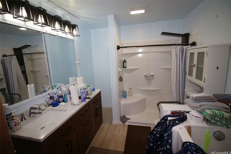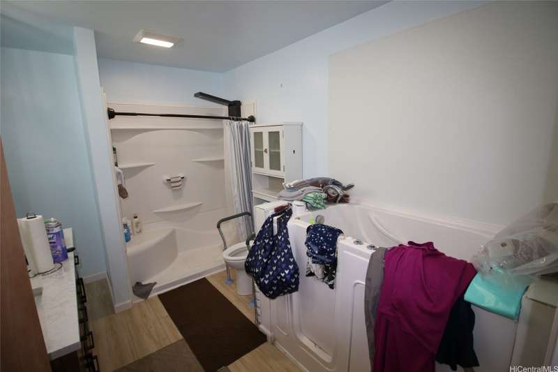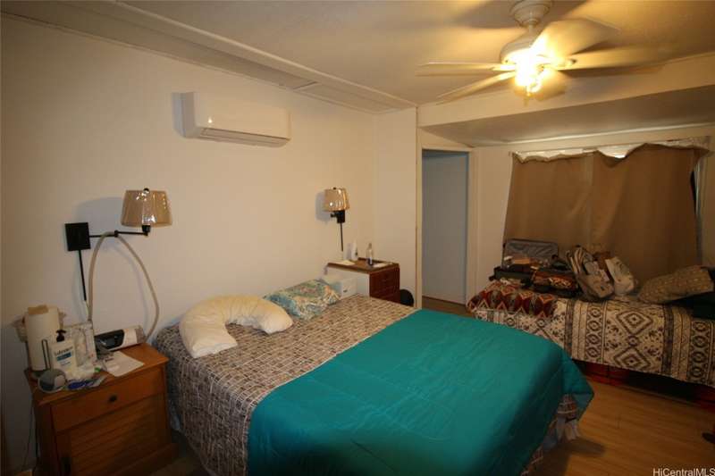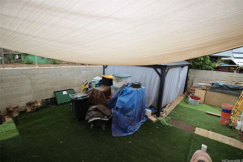 Must-see Makaha home featuring 33 PV panels with two battery backups for energy efficiency and peace of mind. Recently reroofed, this beautifully upgraded property offers a stunning kitchen with butcher block countertops, beautiful cabinetry, and updated bathrooms. The home also includes a walk-in tub for added comfort, split and window AC units throughout to keep it cool, and a screened-in lanai perfect for relaxing or entertaining while enjoying the tropical surroundings. The fully fenced yard features lush turf in the front and side areas that looks and feels like real grass, along with mature tangerine, orange, and coconut trees, plus a charming gazebo—your own private oasis. A spacious three-car garage provides ample parking and storage. Lovingly maintained and thoughtfully upgraded throughout, this move-in ready home is truly a must-see to appreciate its quality and value. Conveniently located near beaches, hiking, and local amenities. Seller is open to offers—don’t miss this opportunity to secure one of Makaha’s best values.