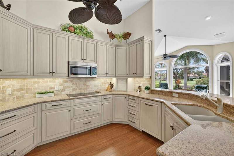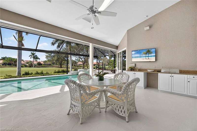 ** Full golf membership to Windstar Club eligibility ** Welcome to 4577 Lighthouse Lane in the highly coveted enclave of Harrington Sound of Windstar on Naples Bay. This 3-4 Bedroom+den/3 Bathroom golf course house features almost 3000 square feet of light-filled living space. Large living room with soaring ceilings and wall of glass opens out to outdoor living area with pool and spa plus a built-in outdoor kitchen with expansive western vistas of the 4th fairway and stunning sunsets. Chef's eat-in kitchen replete with Bosch appliances, shaker cabinetry and granite countertops. Family room with built-ins features gorgeous views plus a lovely dining room with custom built-ins ideal for entertaining. Master suite oasis with large bedroom with access to outdoor living space, 2 walk-in closets and an updated spa-like bathroom with oversized walk-in shower, freestanding soaking tub, double vanity and separate water closet. 2 guest suites on the opposite side of the house plus updated full bathroom. Home office with a closet could be additional guest quarters plus a 3rd full bathroom. 2-car attached garage. This home is truly an entertainer's dream. Windstar on Naples Bay is the only gated golf community with Tom Fazio designed 18-hole golf course that offers direct bay access, a private beach plus dock on Keewaydin Island with boat shuttle plus a full service 73-slip deep water marina. Newly renovated clubhouse (separate membership) with multiple dining areas with stunning views of Naples Bay and Port Royal and Royal Harbor, billiards room, 6 Har-Tru tennis courts, bocce courts and a state of the art fitness center slated for 2026 completion. Preferred location just a short drive via car, bike or golf cart to downtown's 5th Avenue known worldwide for its fine dining, shopping and beaches. Situated in the vibrant Bayshore Arts District, Windstar is walkable to Naples Botanical Garden and Naples Pickleball Center home of the pickleball US Open. Easy access to I-75, Naples and Fort Myers airports.