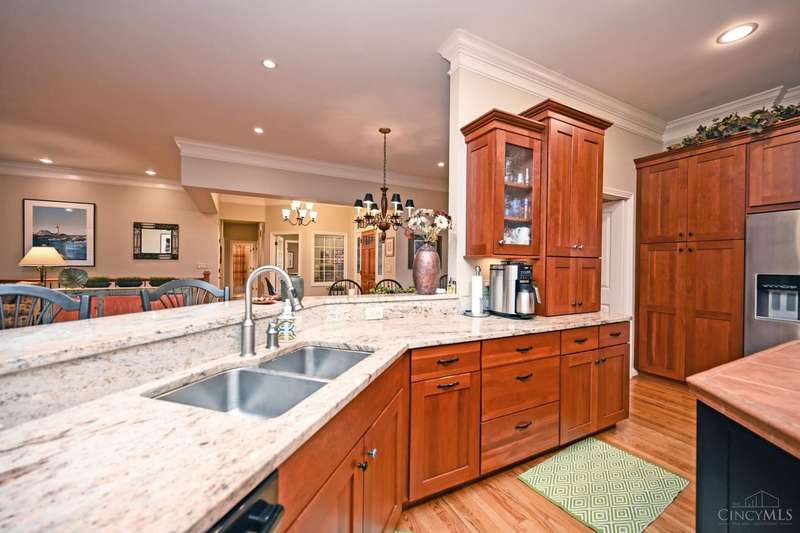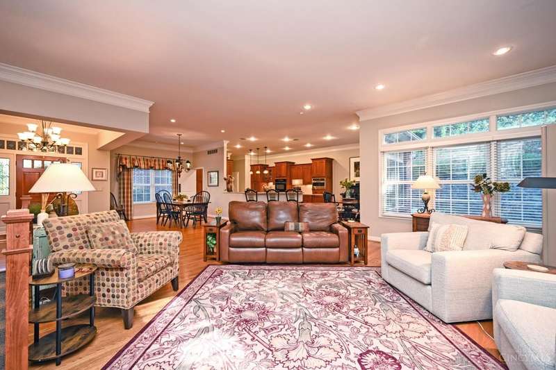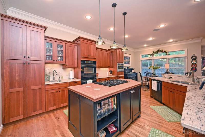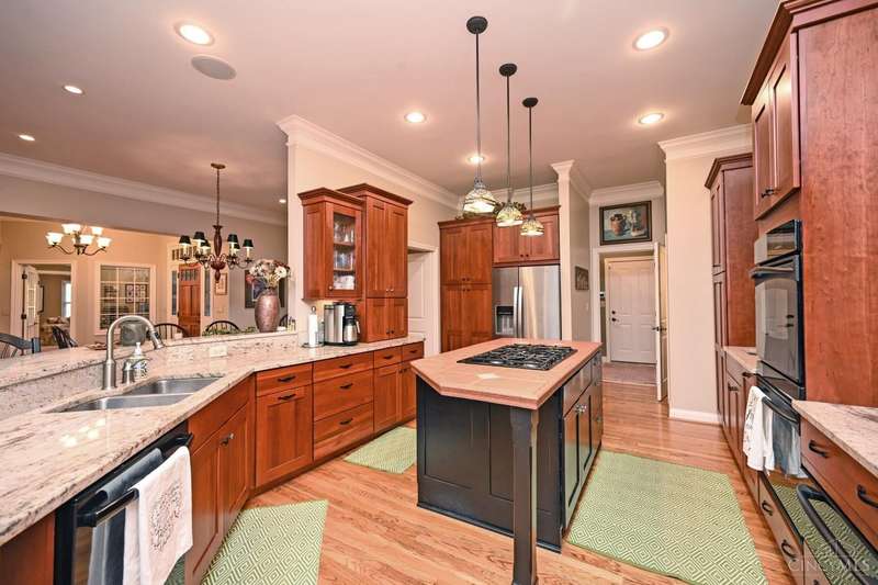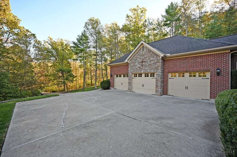 Custom brick ranch in Watch Hill built by Richard Moore Custom Homes on wooded one acre lot, adjacent to Green Space. This spacious four bedroom, three and a half bath home features an open floor plan and over-sized three car garage. The Great Room features beautiful hardwood floors and floor to ceiling stone fireplace. The gourmet kitchen has custom Cherry cabinets, granite, double ovens, warmer drawer & beverage frig. Perfect for entertaining with counter bar and casual dining space adjacent to the Great Room. Enjoy one floor living with Primary Suite, large walk in closet, adjoining bathroom w/two vanities & large slate shower w/bench seating. Main floor amenities include additional bedroom/mother in law suite w/private exterior entrance, office, laundry room & dining room. The lower level has two bedrooms, a recreation room w/wet bar, family room, 2nd laundry room and large unfinished storage space & shelves. Enjoy this rare oasis in Watch Hill, near to all community amenities.