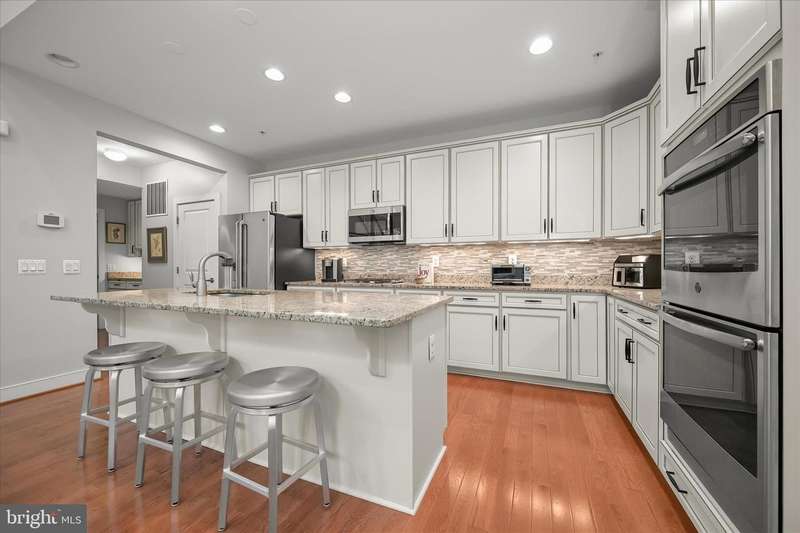 Welcome to this beautifully maintained end-unit luxury townhome offering over 2,600 sq. ft. of refined living space in the highly desirable 55+ Walden Woods community of Howard County. Flooded with natural light from its end-unit positioning, this home showcases modern design, open-concept living, and thoughtful upgrades. Step inside to gleaming hardwood floors and a bright, chef-inspired kitchen complete with an oversized island, granite countertops, premium stainless-steel appliances, butler's pantry and abundant cabinetry, perfect for both everyday living and entertaining. The main level flows effortlessly between living, dining, and kitchen spaces and features a cozy gas fireplace in the living room, ideal for quiet evenings at home. A standout feature of the home is the main-level primary suite, offering exceptional convenience with a large walk-in closet, private spa-like bath, and room-darkening shades for restful sleep. Upstairs, two additional bedrooms and a full hall bath provide ample space for family or guests, while a generous loft-style area creates the ideal retreat for movie nights, game days, or a cozy second living space. The fully finished lower level expands your options even further, perfect for a home theater, gym, playroom, office, or guest suite, complete with a full bath for added flexibility. Added second handrail to both the upper and lower staircases for improved safety and support. A two-car garage provides everyday practicality. Step outside to a private, low-maintenance retreat featuring a beautiful stone patio and a motorized retractable awning, offering the perfect space for outdoor dining and relaxation. Enjoy community perks including walking and jogging paths, beautifully maintained grounds, and access to a clubhouse with gathering spaces. Ideally located near major commuter routes, shopping, dining, and top-rated Howard County amenities, this home blends modern comfort with exceptional convenience. Don't miss this rare opportunity to own a turnkey, end-unit townhome with a main-level primary suite in one of Howard County's most desirable communities.