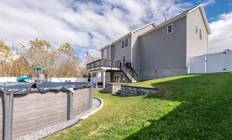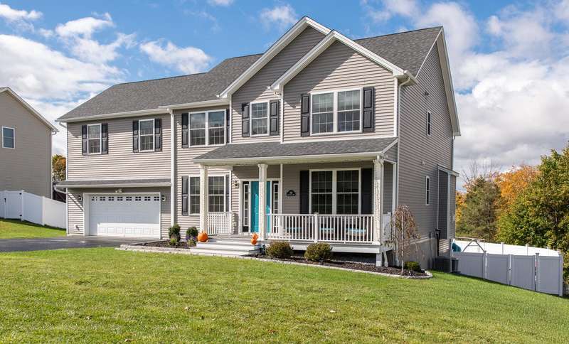 Welcome to Stratford Farms An enclave of modern luxury. Built in 2018 and pristinely maintained, this 4 bedroom 2.5 bath Colonial in the acclaimed Arlington School District offers a seamless fusion of style, sophistication, and high end comfort. From the inviting rocking-chair front porch to the rich walnut-toned hardwood flooring throughout, this home exudes warmth and quality at every turn. The first floor features a formal living/flex room and a formal dining room, ideal for entertaining or a home office setup. The open-concept kitchen and family room are the heart of the home - enjoy the cozy gas fireplace with custom remote-control blinds, and a gourmet kitchen boasting a massive center island, stainless steel appliances, and granite countertops with a unique leathered finish. Sliding glass doors lead to a spacious 16x20 deck, perfect for outdoor gatherings. Convenient access from the two-car garage into the kitchen with minimal steps - adds ease to everyday living. A stylish half bath completes the main level. Upstairs, the primary suite impresses with a large walk-in closet and a luxurious ensuite bath featuring an oversized walk-in shower and double-sink vanity with granite countertop. Three additional bedrooms offer generous space, complemented by a full hallway bath with tub/shower combination and a dedicated laundry room with utility sink. A full, unfinished walkout basement provides endless possibilities for future expansion perfect for recreation room, home gym or media space. With high ceilings, backyard access, and abundant storage this level combines flexibility with functionality. Youll love the extras! - custom blackout blinds throughout, recessed lighting, central air, an Energy Star Navien hydronic boiler, and so much more. Enjoy outdoor living on the brand new paver patio or take a dip in the 21-foot round saltwater pool - all within your own private, fully fenced backyard oasis. The home is also hardwired for an alarm system with full property radius cameras for added peace of mind. With natural gas, municipal water, and community sewer, this home checks every box. Just minutes to Adams Fairacre Farms, East Dale Village, The Empire State Rail Trail and the Taconic State Parkway. This move-in-ready home combines comfort, privacy, and modern amenities - perfect for todays lifestyle!