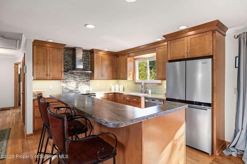 Well-maintained bi-level home with stunning views of the mountains and Dream Lake! This four-bedroom, two-bath property features a brand new roof, updated kitchen with a convenient island, and beautiful hardwood floors throughout. Kitchen and bath have heated floors. Home features dual/redundant heat systems, Enjoy direct access to Dream Lake, a peaceful non-motor boat lake, perfect for relaxing afternoons (deeded lake rights, and you can build a dock). The property also includes a barn with plenty of space for animal enthusiasts. Meticulously cared for, this home offers a blend of comfort, functionality, and scenic charm. NO OGM convey.