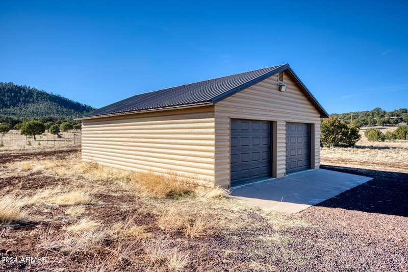 Stunning 3-bedroom 2-bathroom home on 5.35 acres (approx. 233,046 sf) located on a paved road minutes from Show Low. Open concept floor plan is perfect for entertaining. The kitchen features ample cabinet space, tons of counter space and stainless-steel appliances. Master suite is generous in size with dual vanities and access to laundry room. A full basement downstairs provides extra space—additional living area, craft room, home school, or anything you can dream of. Enjoy the 4 seasons from the front or back deck. Additional storage in the detached 2 car garage.