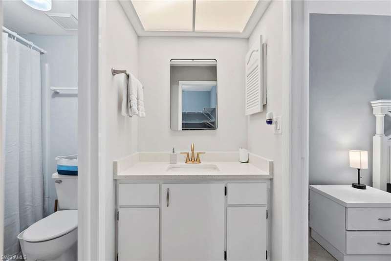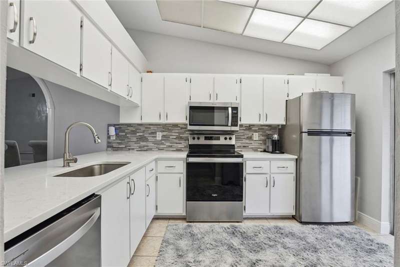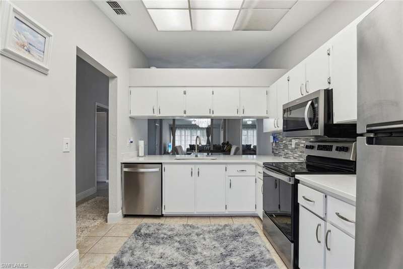 Welcome to this beautifully maintained 2-bedroom, 2-bath second-floor end unit in the highly sought-after western section of the Winterpark community of Naples, FL. This light-filled home enjoys a desirable southern exposure, allowing sunshine to pour through the spacious rear windows and brighten the open living area all day long. Inside, you ll appreciate the tasteful tile flooring, upgraded countertops, and well-chosen, subtle design updates that give the space a fresh, inviting feel. The screened front lanai offers the perfect spot for your morning coffee or a relaxing evening enjoying Naples tropical breezes. Winterpark is known for its resort-style amenities, including one of the largest community pools in Southwest Florida, tennis and pickleball courts, and an active social scene that makes it easy to connect with neighbors. Located just minutes from 5th Avenue South, pristine Gulf beaches, shopping, and dining, this condo offers comfort, convenience, and the best of Naples l