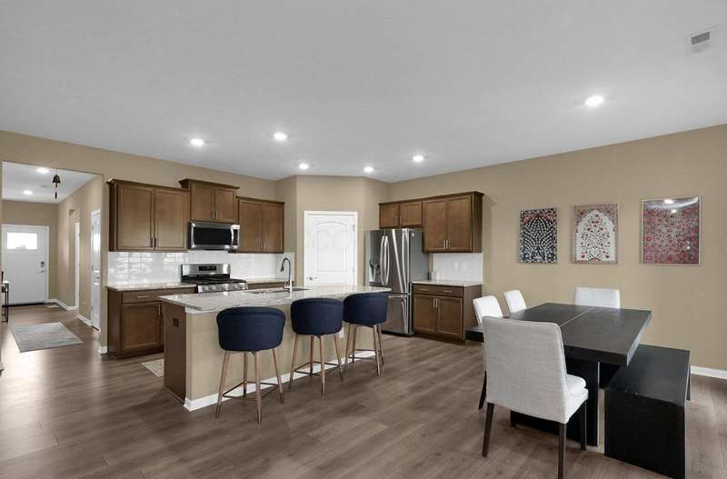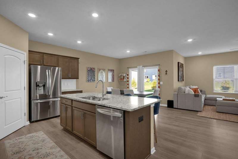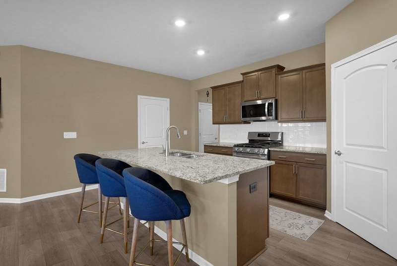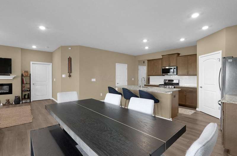 This lovely ranch-style home (built in 2022) blends modern convenience with cozy charm! Enjoy effortless one-floor living in this spacious 4-bedroom, 2-bathroom layout with high ceilings and an open floor plan that flows beautifully. Fantastic eat-in kitchen features a granite countertop, a large island, gas range, and a pantry. The sizable great room with a fp is nice for entertaining. Relax in the primary suite, complete with a tray ceiling, sizable bathroom, and walk-in closet. Main level laundry room with a washer and dryer included for added convenience. Step outside to unwind on the front porch or covered rear patio. Plus, HOA perks like lawn care, garden bed maintenance, and pool access mean you can move right in and enjoy the easy life.