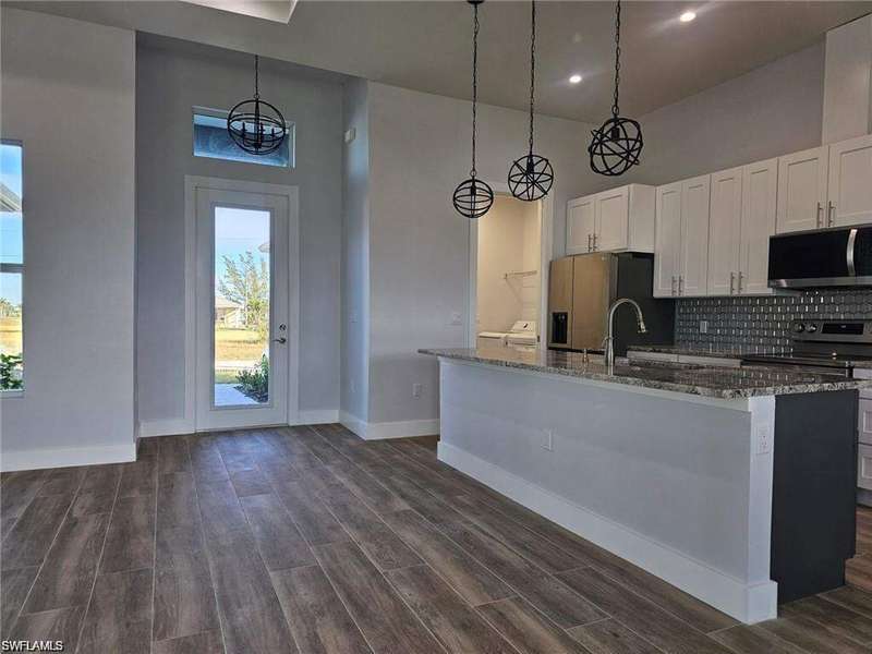 JUST REDUCED! Resort-Style Living in NW Cape Coral's Hottest Growth Corridor ! Step into paradise with this beautifully crafted Lago Model pool home, nestled in the highly desirable Northwest Cape Coral-where breathtaking sunsets paint the sky and future development like the 7 Islands Project and Crystal Lake promise even more lifestyle perks. This move-in ready gem boasts quality construction and upscale finishes throughout, including soaring ceilings, elegant 8-foot doors, 6-inch baseboards, and PGT impact-rated windows and doors for peace of mind. The open-concept layout flows effortlessly across textured walls and tile flooring, anchored by a chef's kitchen with granite countertops, wood cabinetry, and stainless steel appliances. The spacious primary suite offers dual walk-in closets, double vanities, and a spa-like shower-your personal retreat after a day on the water. Outside, unwind in your screened saltwater pool oasis, surrounded by lush landscaping and a full irrigation system. Whether you're hosting friends or enjoying a quiet sunset swim, this home delivers the resort lifestyle you've been dreaming of. Additional highlights include: Epoxied garage floor & generator plug ready, Washer & dryer included, 2-car garage, and Impact windows & doors. Cape Coral is one of Florida's fastest-growing cities, known as the City of Canals-with endless boating, fishing, and beach-hopping adventures just minutes away. Fall in love. Make this house your home. Schedule your private showing today and experience the tropical lifestyle that only Southwest Florida can offer.