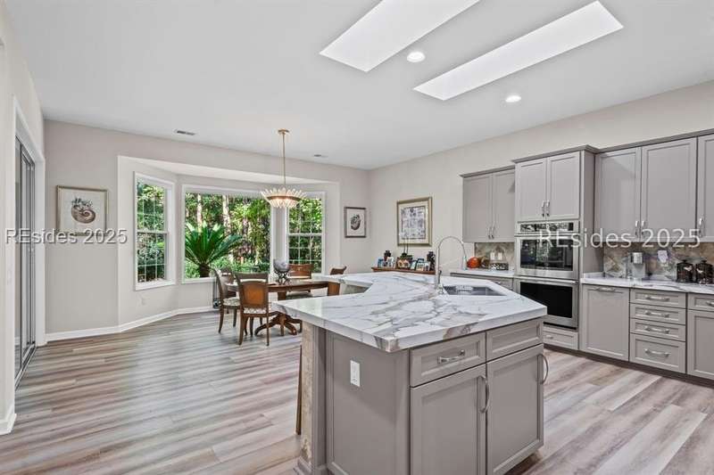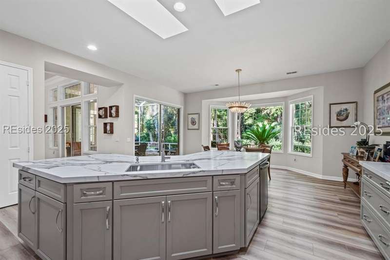 Stunning home in Riverbend.... wood floors in main living areas, totally remodeled kitchen, dining room, 3 bedrooms, 2 1/2 baths, large screened porch with private view. Spacious, oversized 2-car garage with epoxy floors and golf cart bay. Roof 2018, HVAC 2023. Fabulous curb appeal! Enjoy living in the upscale waterfront community of Riverbend while having all of the amenities of Sun City at your fingertips.
