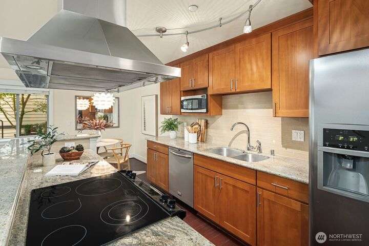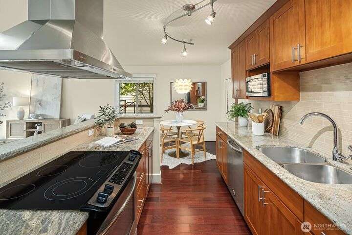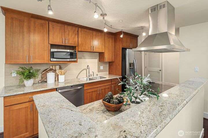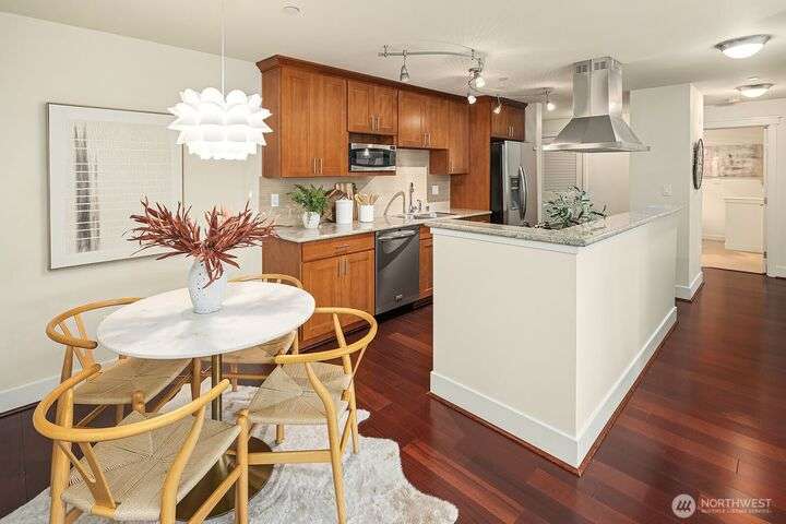 Amazing location! Ask us about Seller paid rate buy down or prepaid homeowner’s dues! Open kitchen & living space. No stairs necessary to get to this unit, providing gentle access, privacy & convenience - Info available on elevator. Large covered parking space, pet friendly community w/ NO RENTAL CAP. Public transportation, light-rail opening early 2026 + neighborhood shopping & dining in this vibrant town center, just a short stroll from home. Situated in a highly sought-after & safe community + top-rated Mercer Island school district. Building amenities include sunny pool area, soothing sauna and game/movie room. ADA accessible, ground-floor unit, plus building elevator.