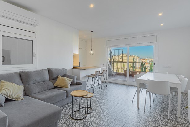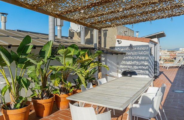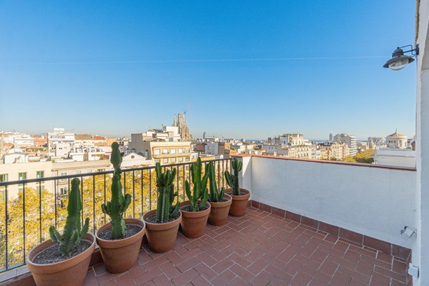 Penthouse with views of the Sagrada Família on Paseo Sant Joan~~Modern penthouse, fully renovated with an elevator, located on Paseo Sant Joan, offering spectacular views of the Sagrada Família, Tibidabo, Collserola, and the sea.~~The property has 70m² of usable space and 90m² of terraces. Its modern Mediterranean-style interior offers a spacious and bright living-dining room, fully furnished, seamlessly integrated with a modern open kitchen, fully equipped. From this space, you can directly access the terrace and, via a staircase, the private solarium, which boasts stunning panoramic views of Barcelona, including the Sagrada Família and the sea. It also features a cozy chill-out area and a barbecue.~~It includes a bright double bedroom with terrace access, an en-suite bathroom, and a walk-in closet, as well as a single bedroom and another full bathroom. The penthouse has underfloor heating throughout.