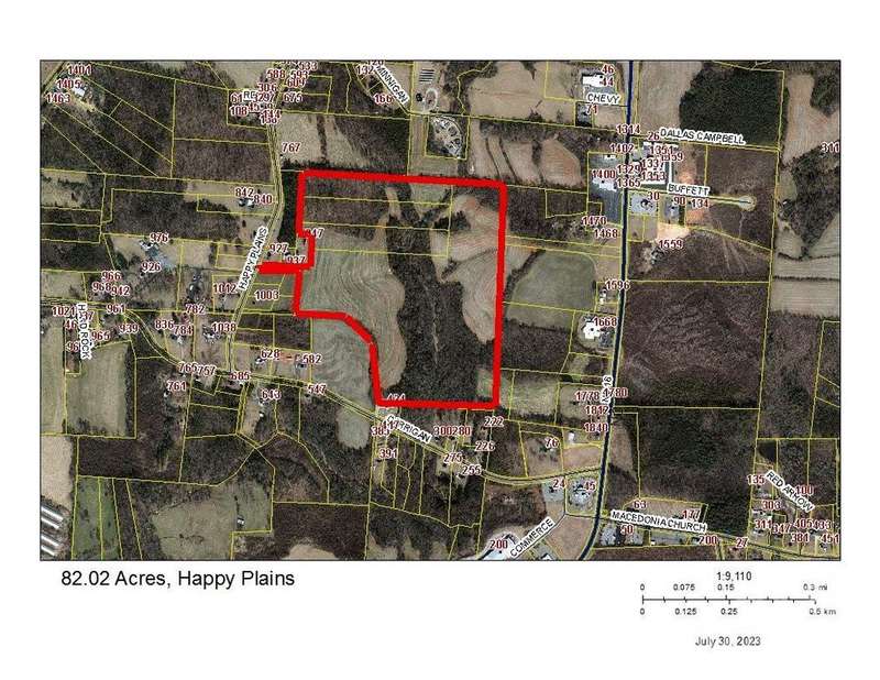 Exceptional 82.02 Acre Prime Development Property currently Zoned RA-20 (Taylorsville ETJ/Township, can be rezoned) consisting of 4 contiguous parcels: (0017819 of 58.02 Acres, 0009979 of 8 Acres, 0009980 of 8 Acres and 0009981 of 8 Acres). Less than a mile from intersection of Hwy 64 and Hwy 16 with straight shot access via mostly 4 lane improved Hwy 16 to West Lake Norman, Douglas International Airport and Charlotte. 20 minute drive to r Hickory, Statesville and Mooresville and destinations nearby. Property sold in entirety, partially wooded and open pasture. Flat topology with running stream along which is easement for existing County/City Sewer and connection point. Also has County/City Water connection point at entrance off of Happy Plains Road. Location has views of the Blue Ridge to the North/NW. Opportunity to develop Mixed-use development including SFR, Multi-Family, Retail or could be possible light industrial. Excellent topo with a Charlotte Regional Draw