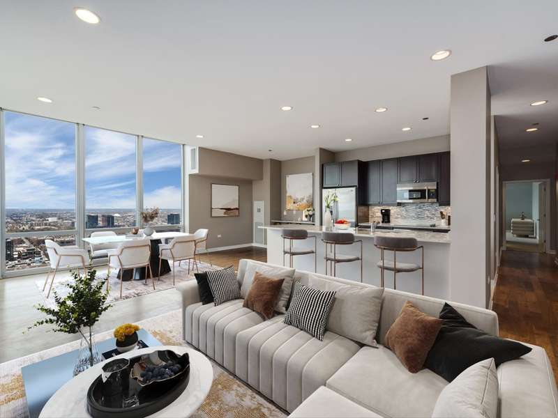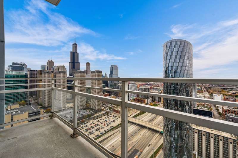 Stunning city views from this high-floor unit at Skybridge. Approximately 1800 square feet and only 1 of 2 units on the 36th floor, this oversized 2Bedroom/2Bathroom floorplan features floor-to-ceiling windows with southwest exposure providing tons of natural light. Other features included hardwood flooring, large living room with designated dining area, massive primary bedroom with on-suite bathroom & walk-in closet, laundry room with side-by-side laundry, and balcony. Modern kitchen with dark stained maple cabinetry, stainless steel appliance package, large island, and granite countertops. The primary bathroom features 6-foot soaking tub, separate shower, and double vanity. Prime deeded garage parking space located on the 1st floor available for 30K. The building was constructed in 2004 and is comprised of 237 residential units. Enjoy 24/7 door staff, exercise room, sundeck with city views, individual storage, dog run, and on-site property management. Direct access to Whole Foods downstairs, and easy walk to Randolph St, Fulton Market, public transportation and everything the West Loop has to offer. Special assessment paid in full by seller so new owner does not have to assume any cost.