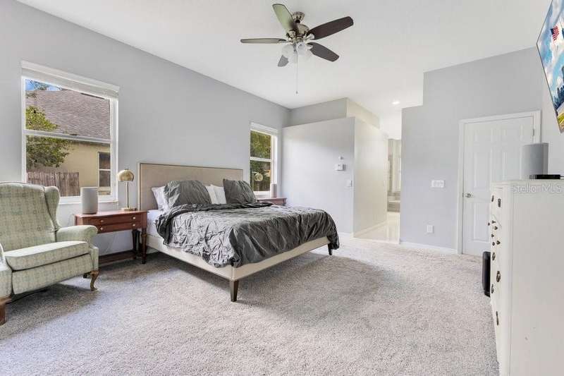 Solar-powered living meets comfort and function in this 5-bed, 3-full baths, along with 2 half bathroom home with 3,107 sq ft in the gated Sweetwater West community. Fully paid off 22.3 kW solar system (56 panels), smart hybrid 65-gallon water heater, spray-foam insulation, and variable-speed pool pump deliver efficiency and low utility costs. The screen-enclosed lap pool, fenced backyard, and covered patio create an inviting outdoor retreat. Inside, engineered hardwood flooring flows through the formal living and dining rooms, while the open-concept kitchen offers 42" shaker cabinets, Samsung black stainless-steel appliances, induction range, undermount sink, and designer ceramic wall inlay. The layout includes a main-floor primary suite with frameless glass shower, soaking tub, dual vanities, and walk-in closet, plus three secondary bedrooms upstairs—some with reading nooks—and two additional half baths for convenience. Recent updates include two new A/C units and upgraded insulation. The attached three-car garage provides ample parking and storage. High-speed internet available. Ideally positioned near Sweetwater Country Club and Wekiwa Springs State Park, with Publix Super Market 0.8 mi away, local coffee spots such as Canon Coffee and Double O’s Coffee nearby, and convenient access to I-4, shopping, and dining. 3D tour available on Zillow for an interactive walkthrough.