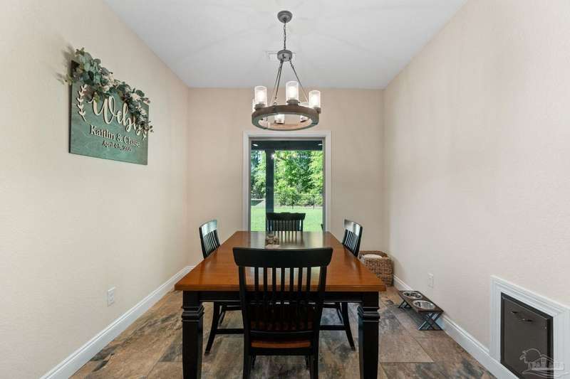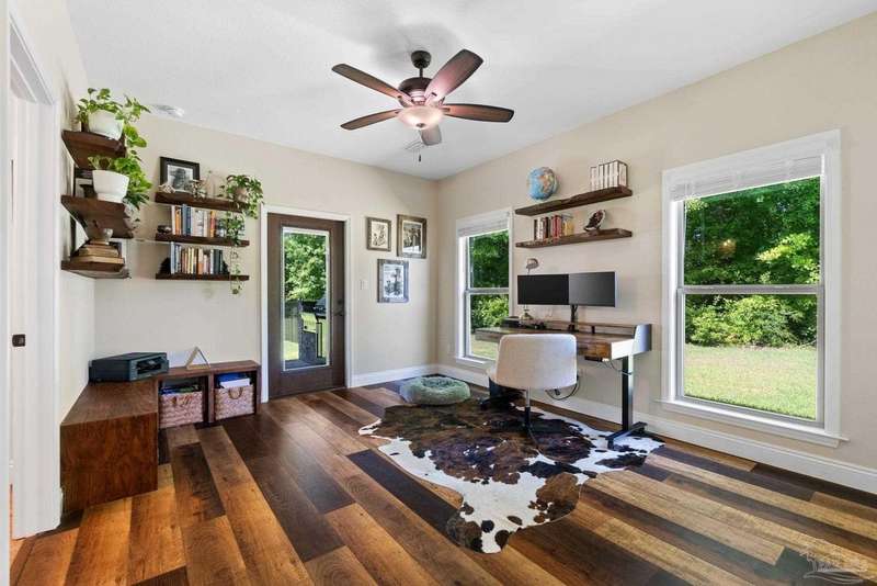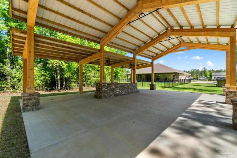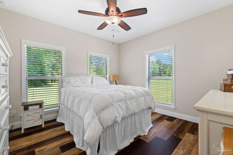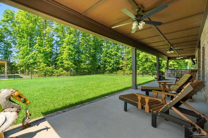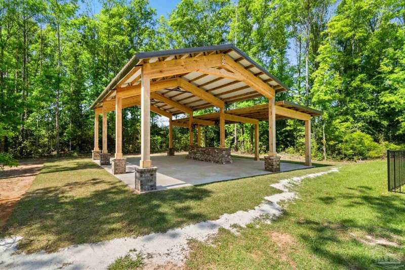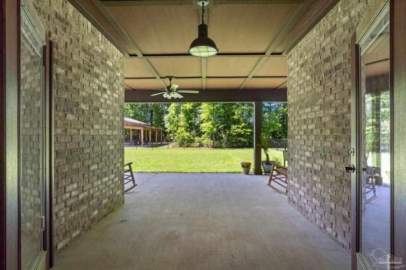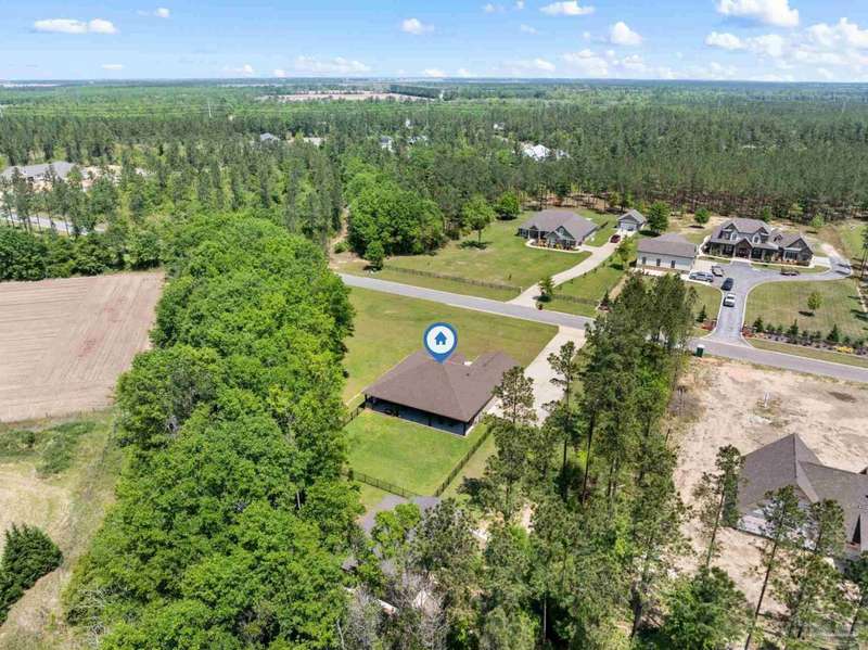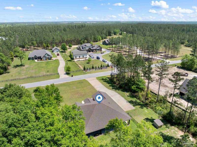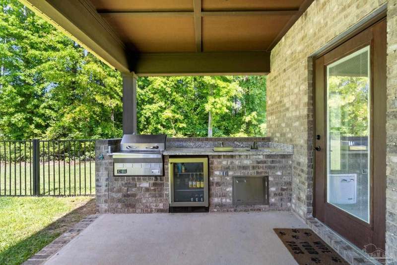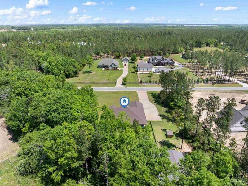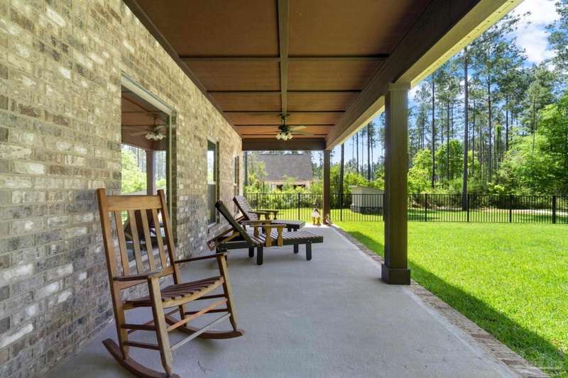 Located in a the beautiful gated Sage neighborhood in Chumuckla, FL. This 3 Bedroom and 3 Bath home consisting of 1995 sq.ft. home is perfectly situated on 2.2 acres. No detail was left out on this 2022 built home. Along with 3 bedrooms, there is also two flex rooms that can be used for an office, exercise room, or playroom. The kitchen offers a propane stove and a chef's side by side fridge/freezer. The master bath has a jetted garden tub and stand-alone custom tile shower. There is a large spacious back porch that runs the length of the home, offering a complete outdoor bricked kitchen with a built in pellet grill, burner, and sink. The home has been wired for a generator plug in system and also has a propane instant hot water heater. The backyard is fenced with black decorative fencing, for the dogs and future pool area. The entire yard has a sprinkler system which is fed by a water well. At the back of the driveway there is a 30x30 Pole barn with a secondary outdoor cooking area. Nestled in a country setting, but minutes away from Pace, this home is must see!