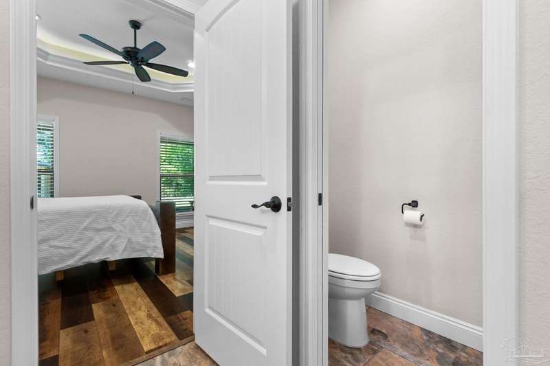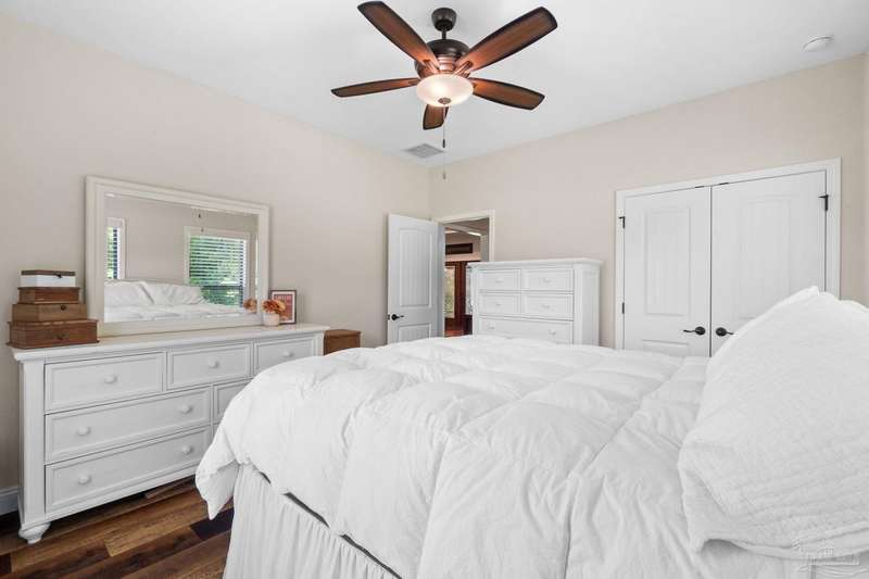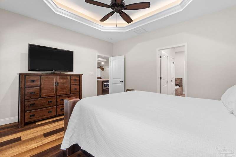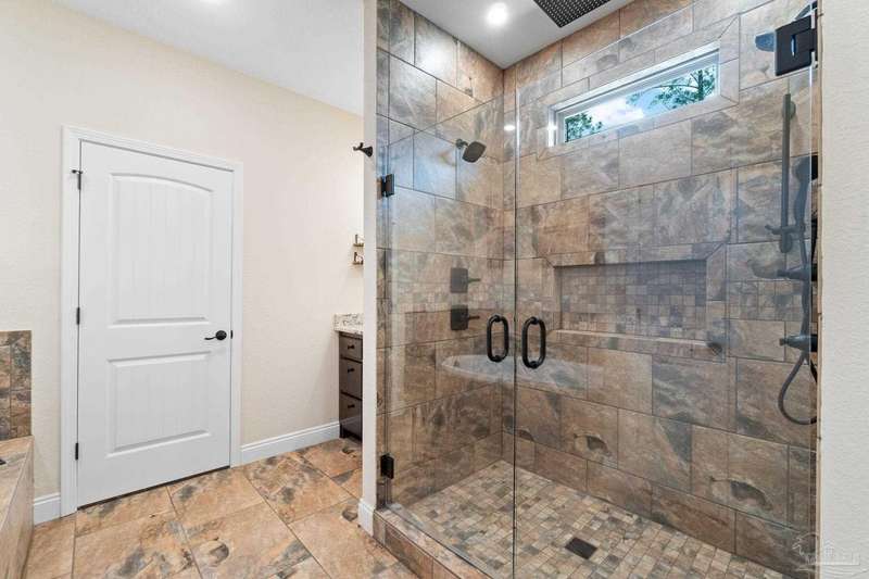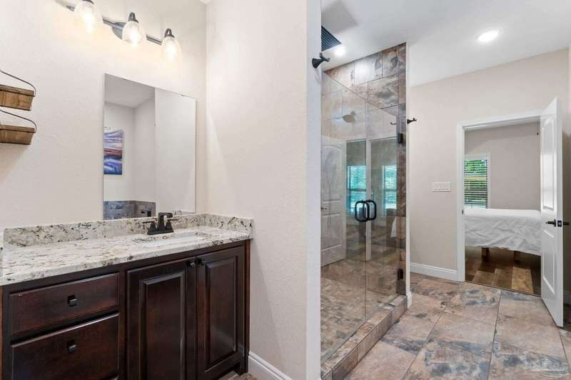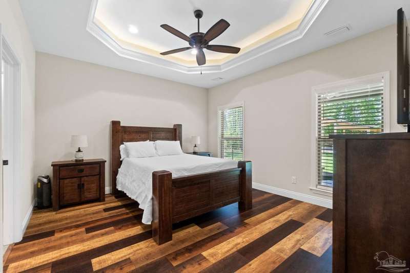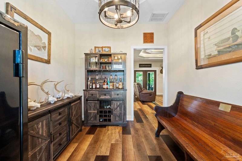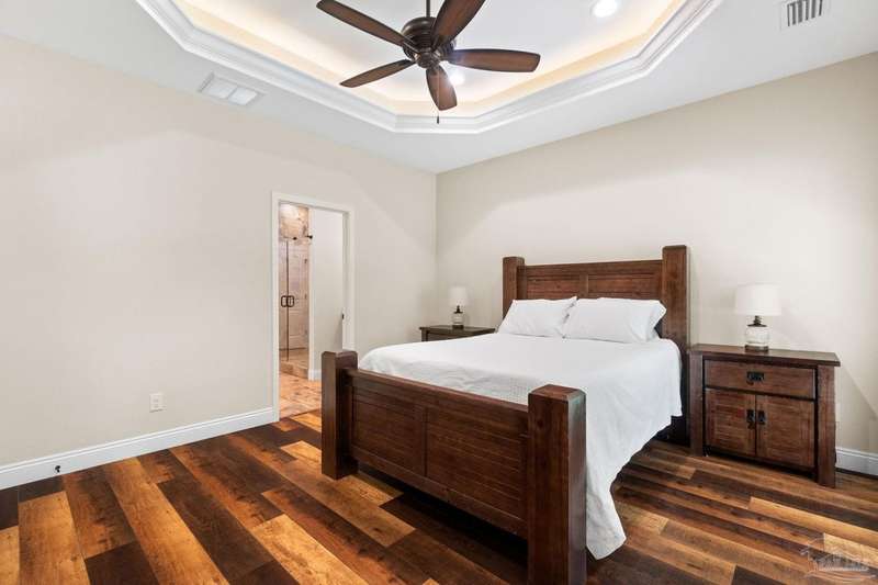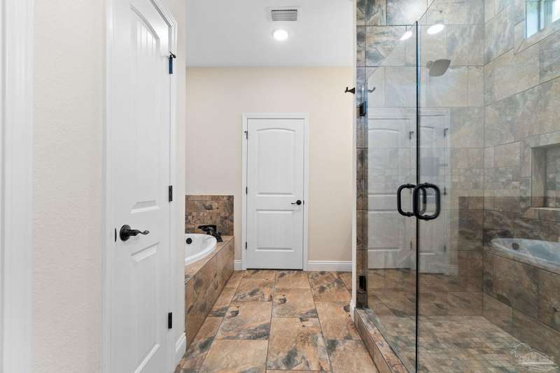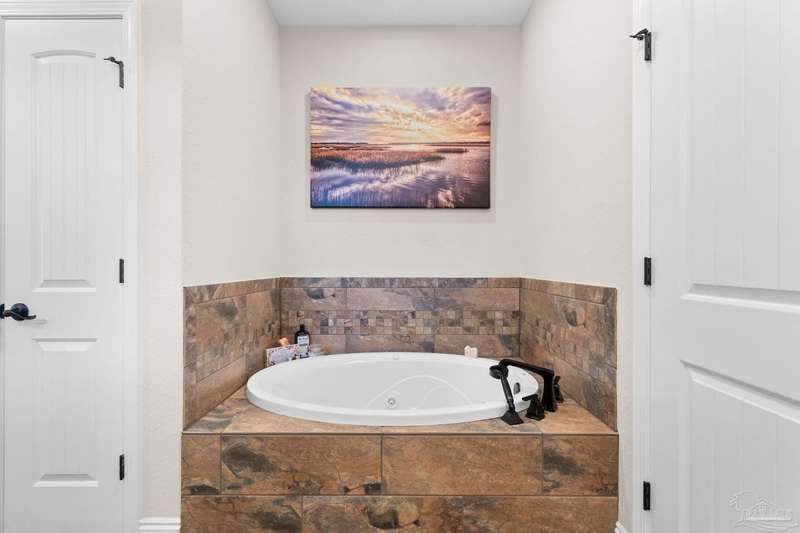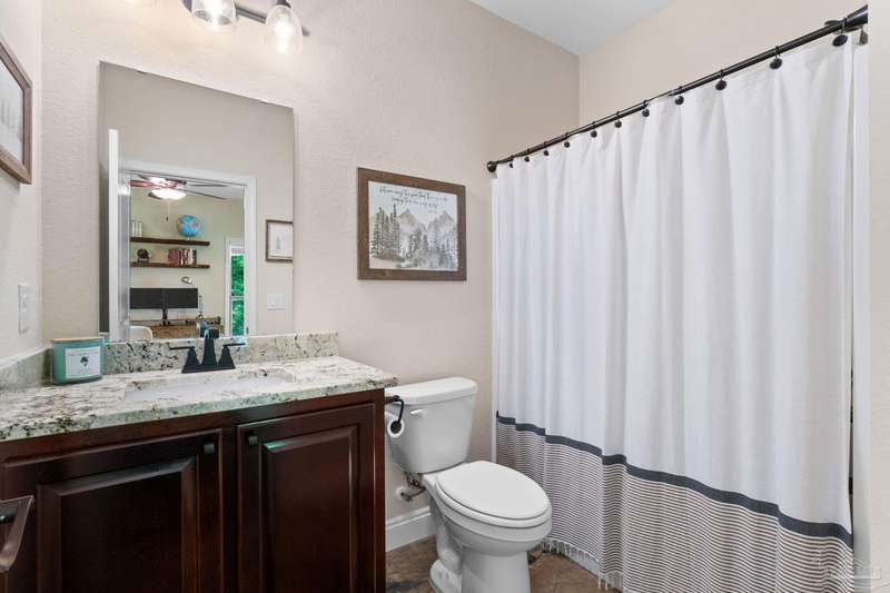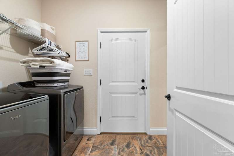 Located in a the beautiful gated Sage neighborhood in Chumuckla, FL. This 3 Bedroom and 3 Bath home consisting of 1995 sq.ft. home is perfectly situated on 2.2 acres. No detail was left out on this 2022 built home. Along with 3 bedrooms, there is also two flex rooms that can be used for an office, exercise room, or playroom. The kitchen offers a propane stove and a chef's side by side fridge/freezer. The master bath has a jetted garden tub and stand-alone custom tile shower. There is a large spacious back porch that runs the length of the home, offering a complete outdoor bricked kitchen with a built in pellet grill, burner, and sink. The home has been wired for a generator plug in system and also has a propane instant hot water heater. The backyard is fenced with black decorative fencing, for the dogs and future pool area. The entire yard has a sprinkler system which is fed by a water well. At the back of the driveway there is a 30x30 Pole barn with a secondary outdoor cooking area. Nestled in a country setting, but minutes away from Pace, this home is must see!