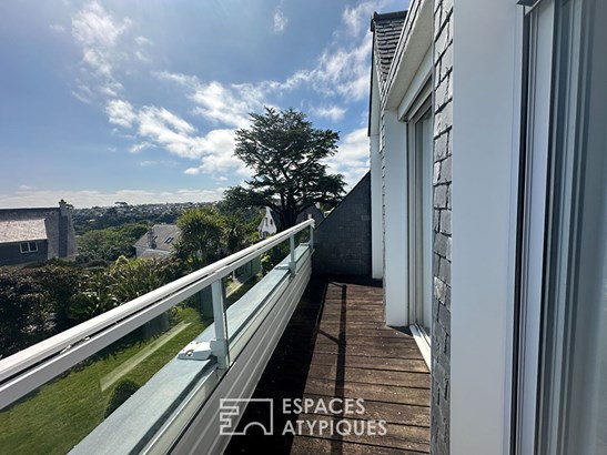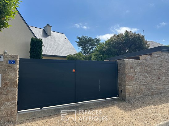 Inside, the house is organized on two levels with single-story living possible. The ground floor accommodates a vast living space bathed in light thanks to large bay windows opening onto the sea. A fully equipped and welcoming kitchen, six spacious bedrooms, several of which have sea views, and a fluid layout of the rooms contribute to the overall comfort of the place. Each space has been designed to combine aesthetics and practicality, in a resolutely family-friendly and soothing spirit.