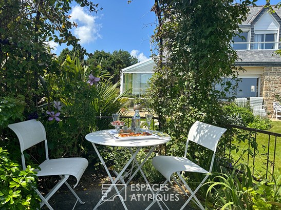 The landscaped garden, perfectly maintained, evokes a botanical park where flowers and various species take turns all year round. This true haven of peace can be enjoyed throughout the seasons, sheltered from view.