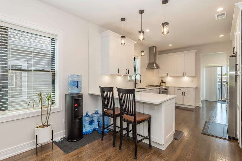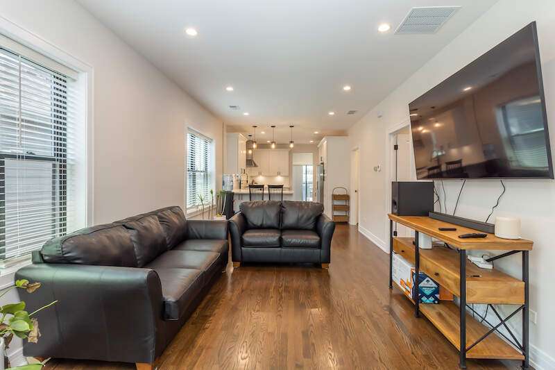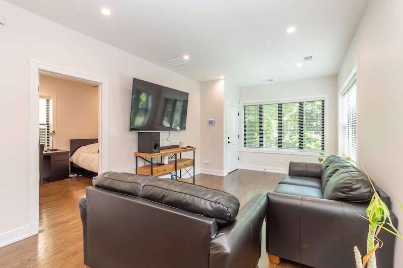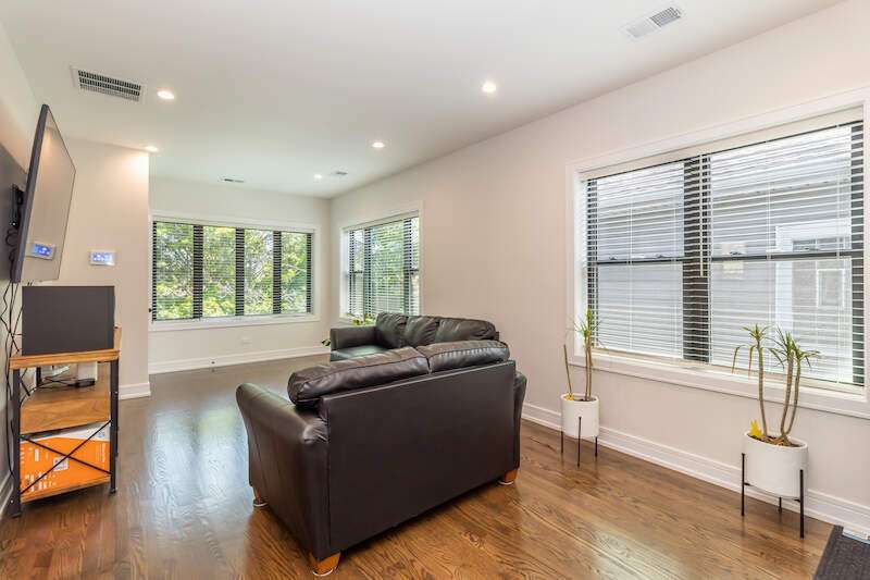 Top-floor 2bd 1bath apartment in sought after Jefferson Park neighborhood, Chicago. This home features vaulted ceilings, gas-forced heat, central AC, ceiling fans, tons of natural light, open concept kitchen/dining/living room, and rear deck. 24hr security cameras just for peace of mind and wired for ADT. Prime location, you will be minutes away from the I-90/94/294 expressways and 10 minutes from Chicago O'Hare airport. If you prefer public transit, the unit is walking distance to the Jefferson Park transit station, Forest Glen Station (Union Station), Metra Gladstone Park station (Ogilvie Station) and CTA Blue line. Featuring newer kitchen appliances, in-unit washer and dryer, thermal pane windows, insulation, espresso-stained hardwood floors, and white kitchen cabinets. Neighborhood highlights include Trader Joe's, Mariano's, Whole Foods, Jewel-Osco, Elly's on Milwaukee, Paterno's Pizza, Bike lanes and bike parks. No pets, no smokers please.