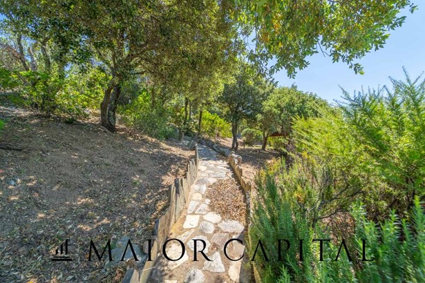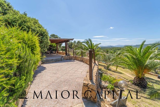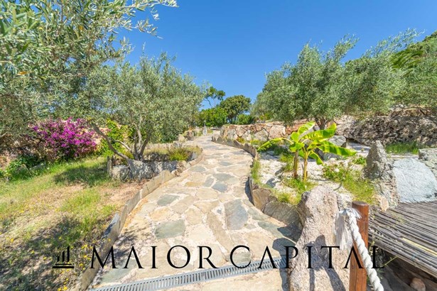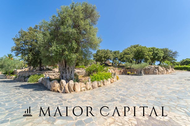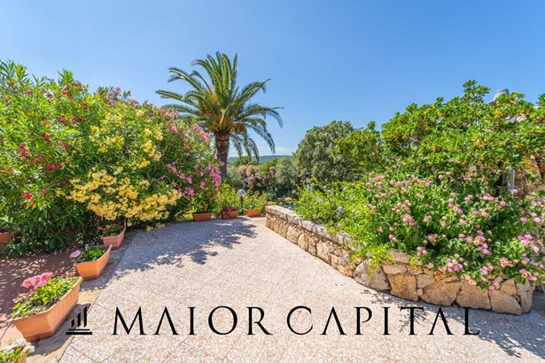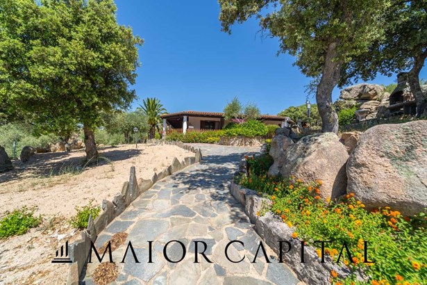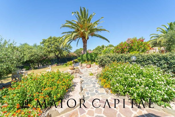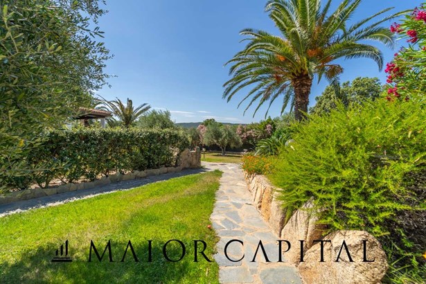 Surrounded by a very green land of about three hectares, the residence is adorned with native Sardinian plants, flowers, fruit trees, and vineyards.