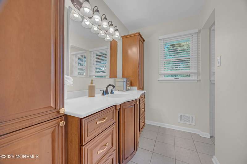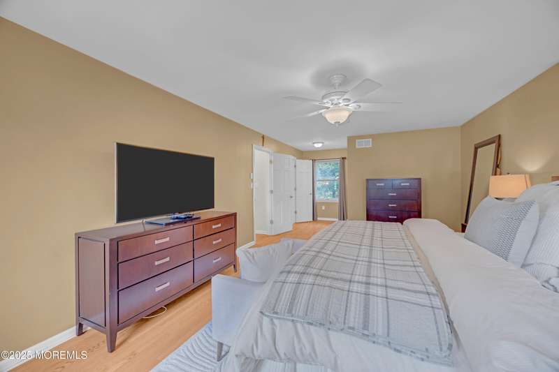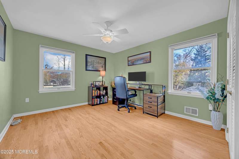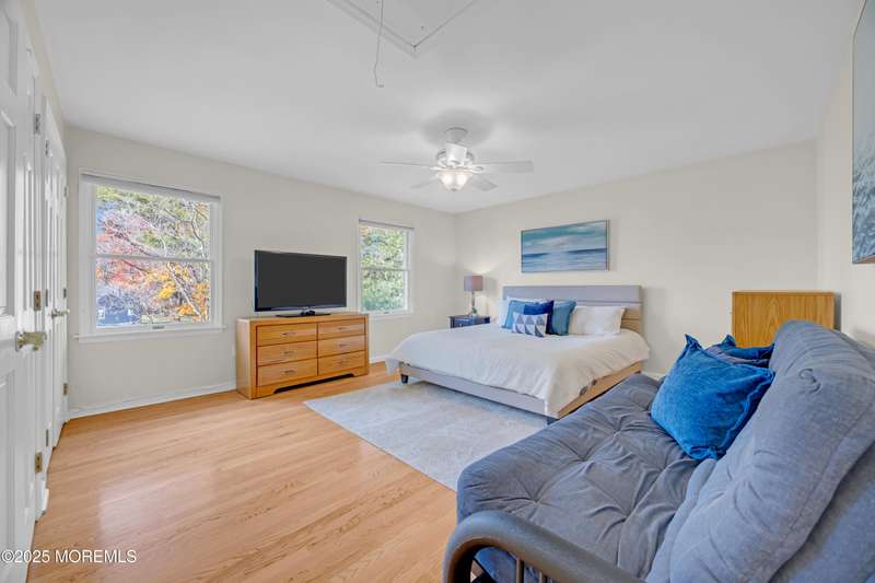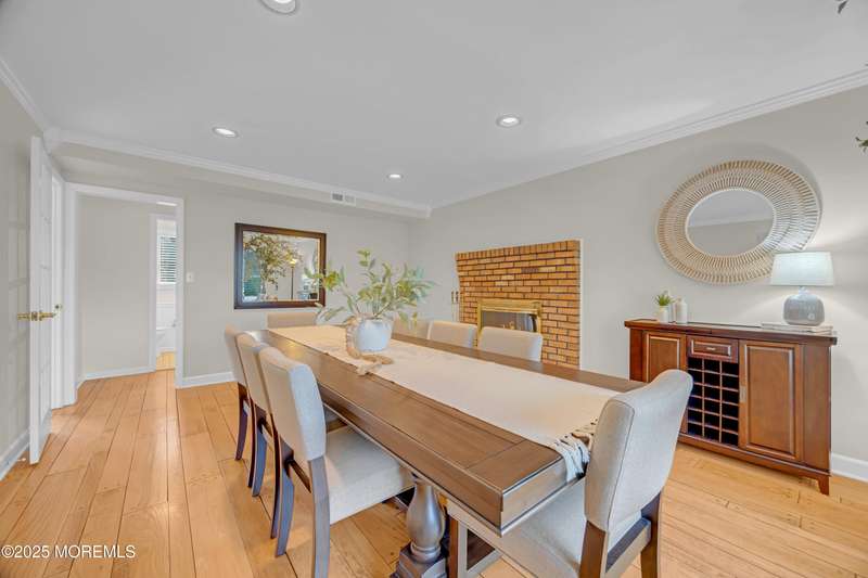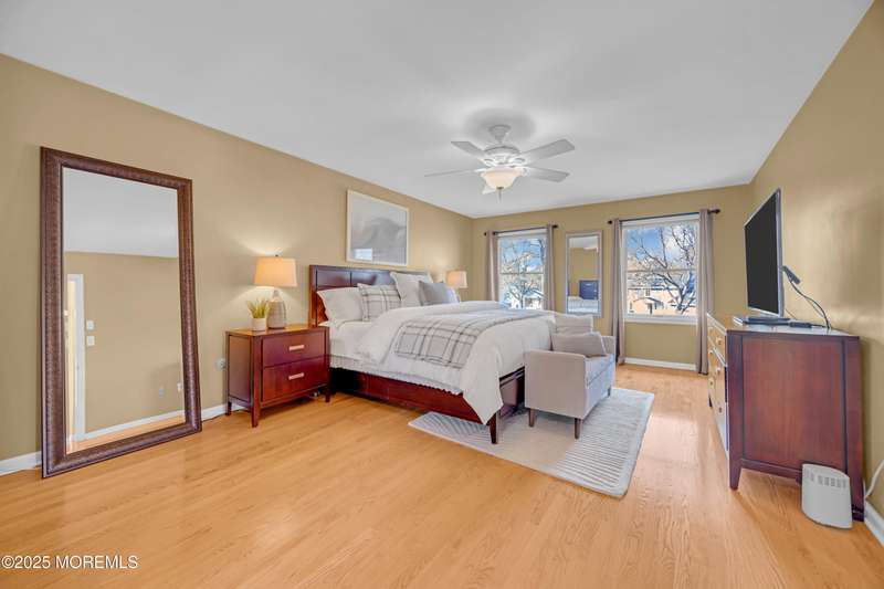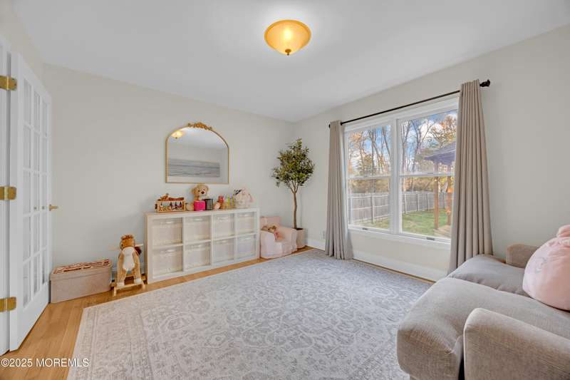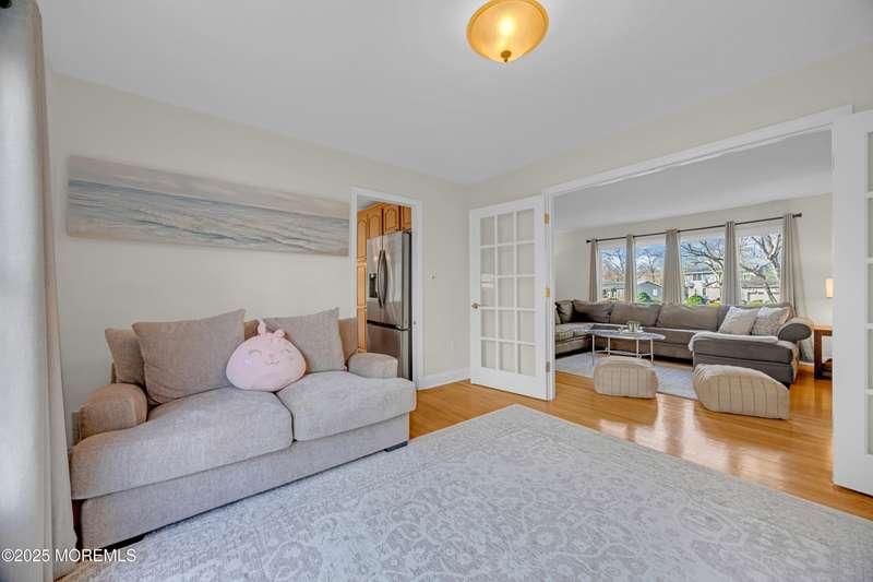 Set in a classic tree-lined neighborhood, this freshly painted 4-bedroom, 2.5-bath home sits proudly on a beautiful corner lot close to everything Eatontown has to offer. Shopping, dining, and entertainment are just a short distance away. Inside, you'll find inviting French doors, gleaming hardwood floors, and wide plank wood flooring in the dining room, perfect for gatherings. The upgraded eat-in kitchen features rich wood cabinetry, stainless steel appliances, and a functional layout that opens seamlessly to the living and family rooms. The first floor also includes a welcoming entryway, powder room, mudroom, and multiple flexible living spaces for entertaining or everyday comfort. Upstairs, four generous bedrooms provide plenty of space for everyone, including a relaxing primary suite with a walk-in closet and spacious bath. A finished basement adds versatility for a playroom, gym, or home office, while convenient laundry options are available on the first floor. Step outside to your oversized backyard, an entertainer's dream, with a two-tier deck, charming gazebo, and plenty of room to garden, grill, or simply unwind. Additional highlights include an attic fan, sprinkler system, newer washer and dryer, direct entry oversized two car garage, and fresh paint throughout much of the home. Located near area beaches, major highways, the exciting new Monmouth Mall redevelopment, and the "Hollywood East" Netflix production studios at Fort Monmouth, this property offers the ideal blend of comfort, style, and convenience in one of Eatontown's most desirable neighborhoods.