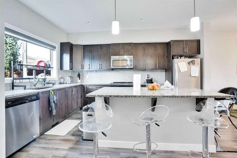 PRICE REDUCTION FOR A QUICK SALE! LOCATION! LOCATION! LOCATION! Sought-after NO CONDO FEE townhome with over 2,080 sq. ft. of fully upgraded living space! Featuring a new roof, new siding, and massive upgrades throughout, this 4-bedroom, 3.5-bath home is truly move-in ready. Step inside to soaring 9-ft ceilings, warm neutral tones, and an open-concept main floor with stone countertops, stylish island, and plenty of space for cooking and dining. Upstairs, the primary suite offers a walk-in closet and elegant ensuite. The professionally developed basement is a showstopper—luxury tile work, feature fireplace, extra bedroom, and a spa-inspired bathroom with a must-see shower. Enjoy a landscaped backyard with deck, plus a double garage. Pride of ownership shines through every corner of this home. Don’t miss this rare opportunity—book your showing today!
