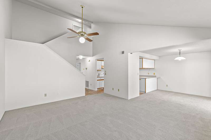 Well-maintained and move-in-ready home with high ceilings and two primary bedrooms with full ensuite bathrooms - centrally located near groceries, the Ashland Family YMCA, and future site of East Main Park! Fresh interior paint and all new carpets, toilets, smoke and carbon monoxide detectors in 2025. Main level features a vaulted living room with ceiling fan, adjacent dining area with sliding glass door to covered patio and fully-fenced back yard, kitchen with Formica dining counter, under-cabinet lighting, stainless double sink, dishwasher, refrigerator, electric range oven with hood, entry with coat closet with under-stair storage, powder room half-bath, laundry room, and one-car garage. Two upper-level primary bedrooms with closets and full ensuite bathrooms with tub showers. Association dues of $165 per month cover landscaping maintenance of front yards and all common areas. Inquire for details